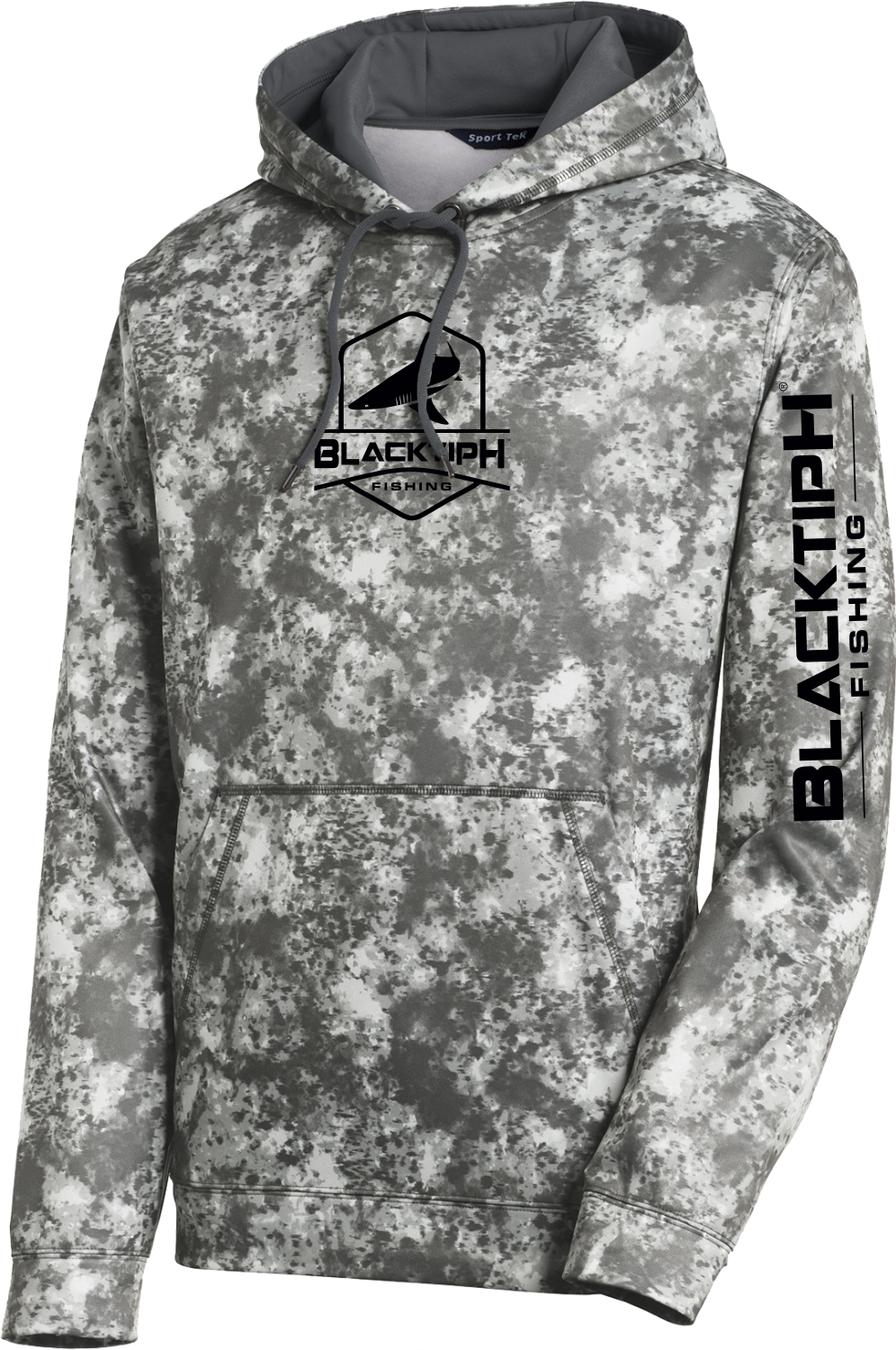 The Mineral Freeze Fleece Hooded Pullover in Dark Smoke Grey is a high-performance garment that seamlessly blends style and function. Made with 5.5-ounce 100% polyester, this pullover features an allover Mineral Freeze sublimated print that creates a natural granite look. The moisture-wicking fabric keeps you dry and comfortable, while the tag-free label and anti-static properties ensure a seamless wearing experience. The pullover comes with a three-panel hood, solid self-fabric hood lining, and solid dyed-to-match drawcords with metal tips, providing both style and functionality. Additionally, the taped neck, self-fabric cuffs and hem, and front pouch pocket make it the perfect choice for outdoor activities and everyday wear.