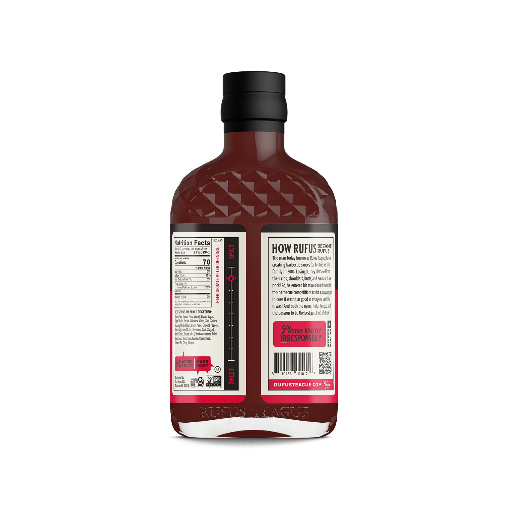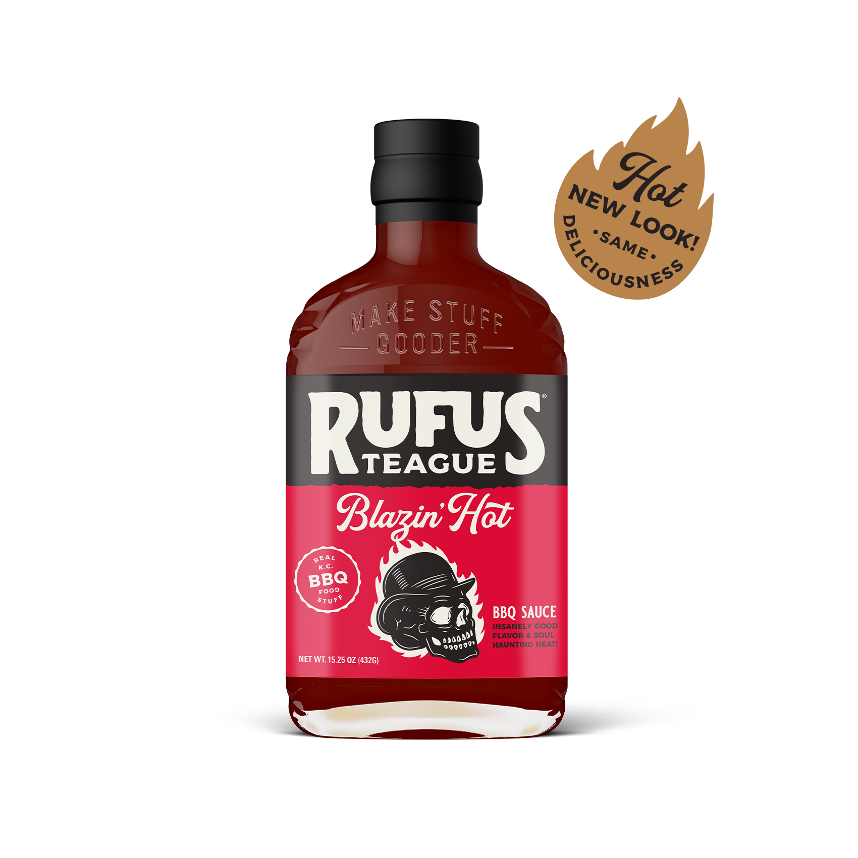 Get the extinguisher ready cuz this sauce ain’t messing around. Blazin’ Hot is thick and sweet just like a great Kansas City BBQ sauce should be, only it finishes with a delicious burn that you won’t soon forget. While this sauce is specifically made for those that like a ton of spice, it’s still balanced with a ton of sweet, smoky flavor that Rufus is known for.