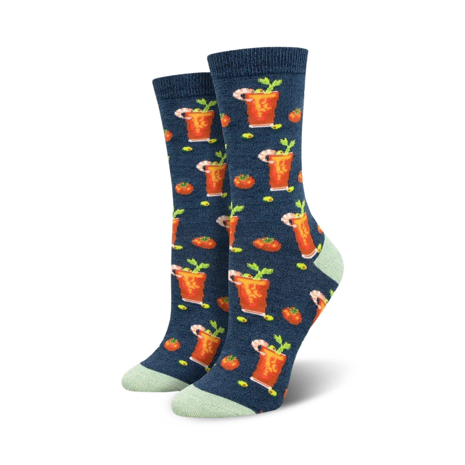 Bloody Mary Bamboo Crew Socks are the cocktail party on your feet! These socks are made with a blend of bamboo and spandex for a soft, stretchy feel. The Bloody Mary pattern features tomatoes, celery, olives, and shrimp, all the ingredients you need for a refreshing and savory drink. Plus, they're the perfect conversation starter at your next party or gathering. So raise a glass and toast your toes to the Bloody Good Drink Bamboo Crew Socks!