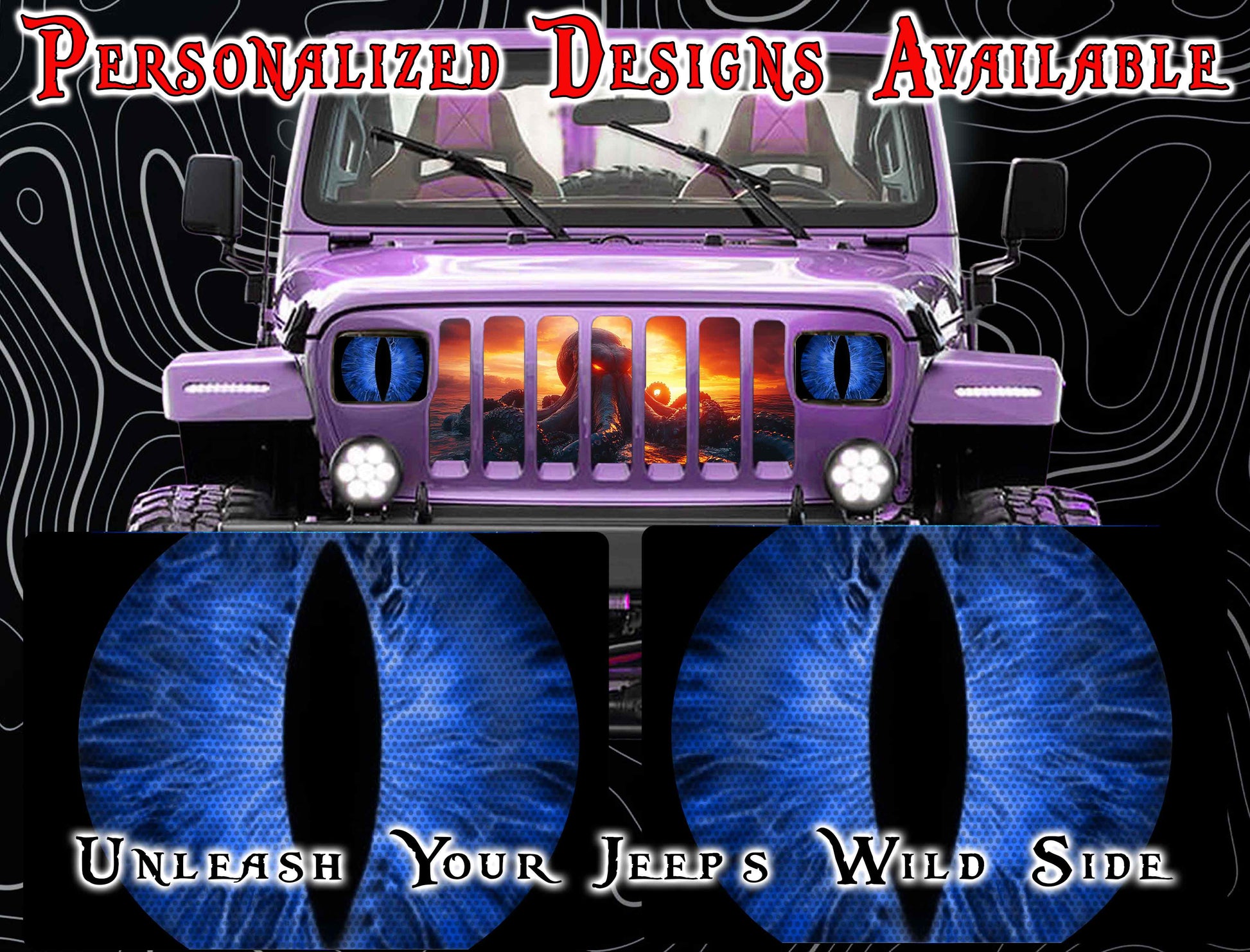 Customize your Jeep with this easy-to-install decal for your headlights. This eye-catching decal is sure to make your vehicle stand out and will last for years. Its high-quality vinyl material ensures a professional look that will make a powerful statement.