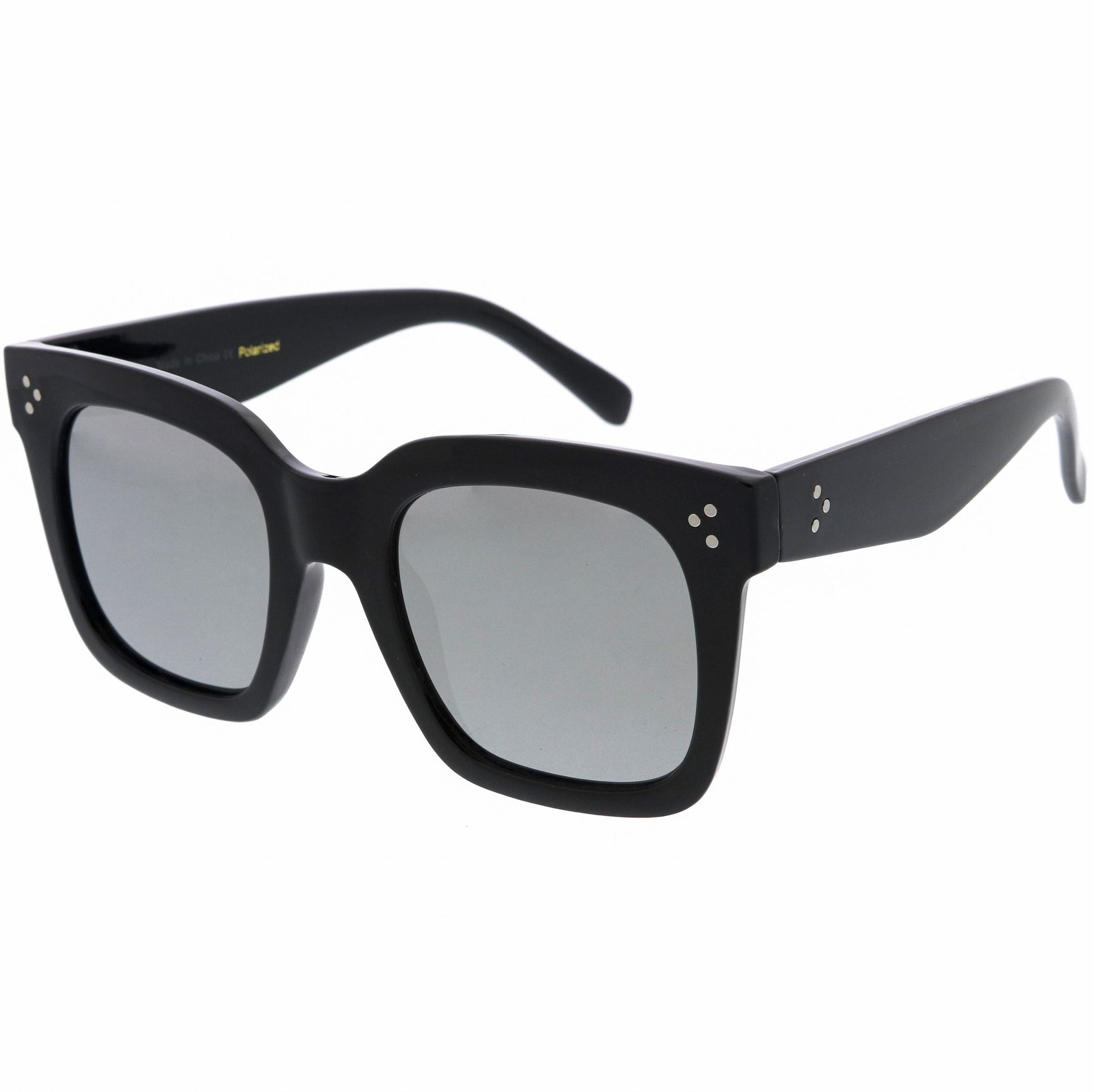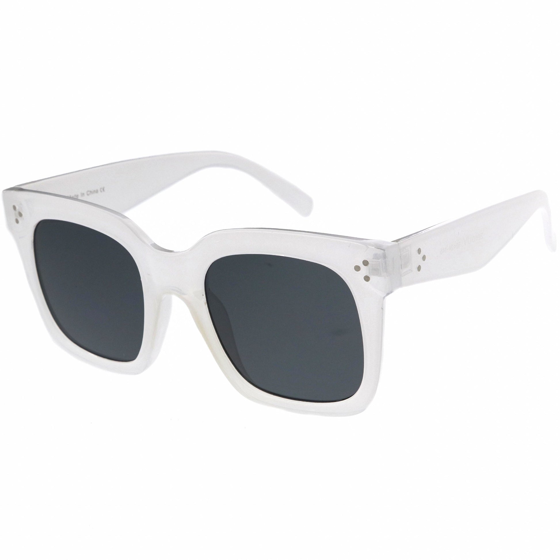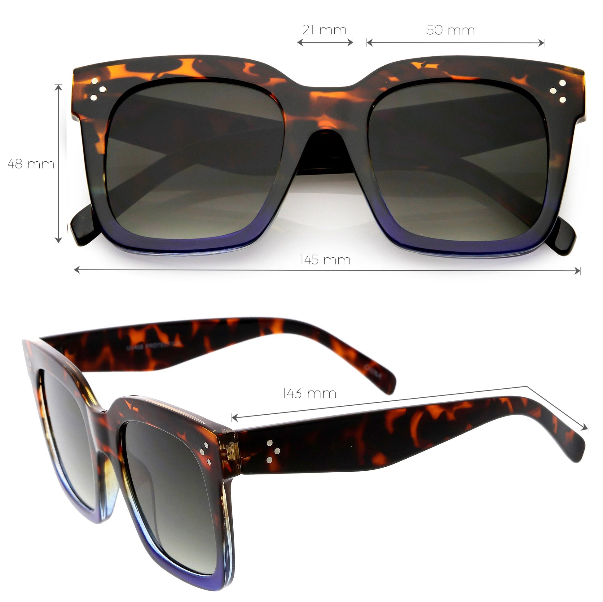 - Dare to be bold with these chunky horn rimmed sunglasses. With stylish square flat lenses and an oversized silhouette, these stand-out sunglasses are complete with high sitting temples and metal accents. The perfect combination of retro and unique, these shades are a must-have this season. Made with a plastic based frame, reinforced metal hinges, and polycarbonate UV400 lenses.