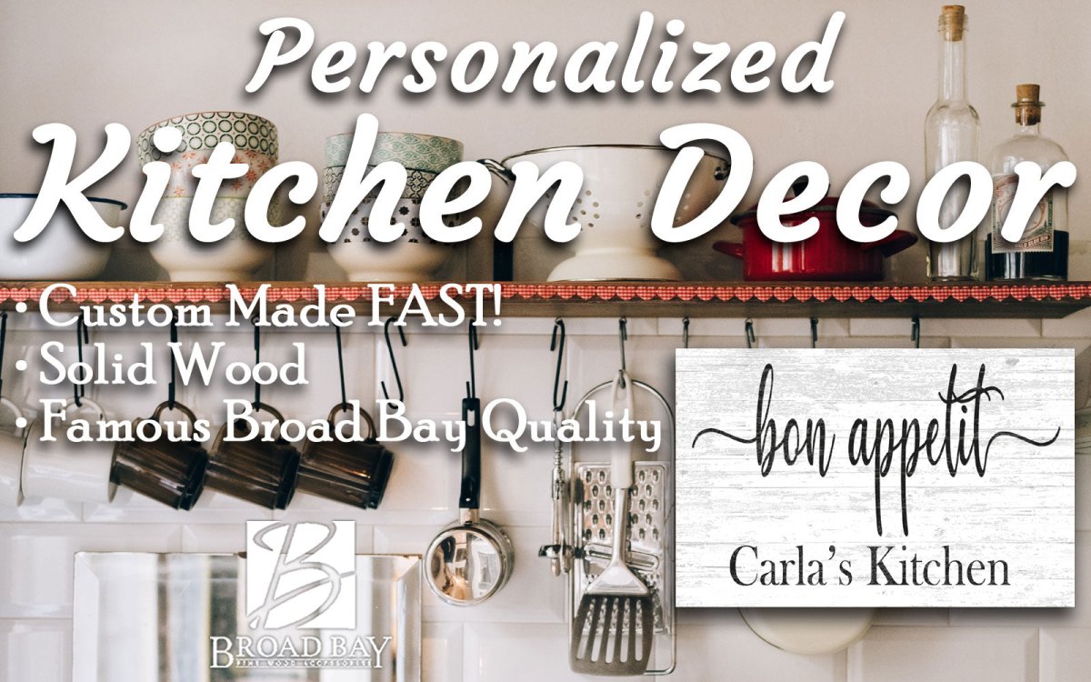 This unique Broad Bay customized Bon Appetit Kitchen Sign makes a great gift. Perfect for bookshelf decor or any special occasion. Broad Bay only uses solid wood for the highest quality home decor Bon Appetit kitchen signs. Custom created daily in Virginia Beach, our signs feature our unique Fresco Print process that actually embeds your design into the surface of the solid wood sign for a long lasting and vibrant appearance. Personalized fast, our customized Bon Appetit kitchen signs make the perfect gift for a man, woman, family or couple!