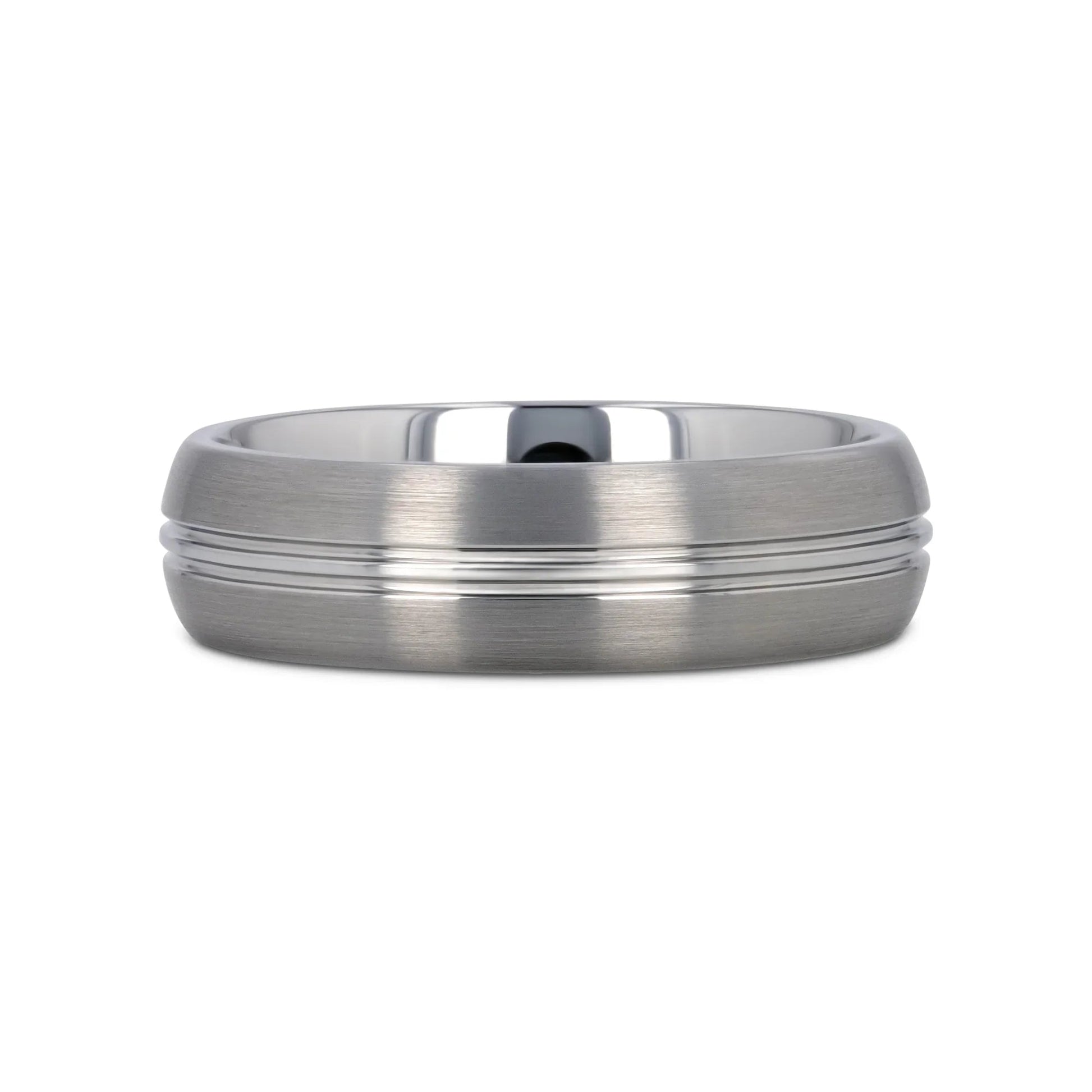 BOSS Tungsten Carbide Ring with Domed Center Groove and Brush Finish - 6mm & 8mm