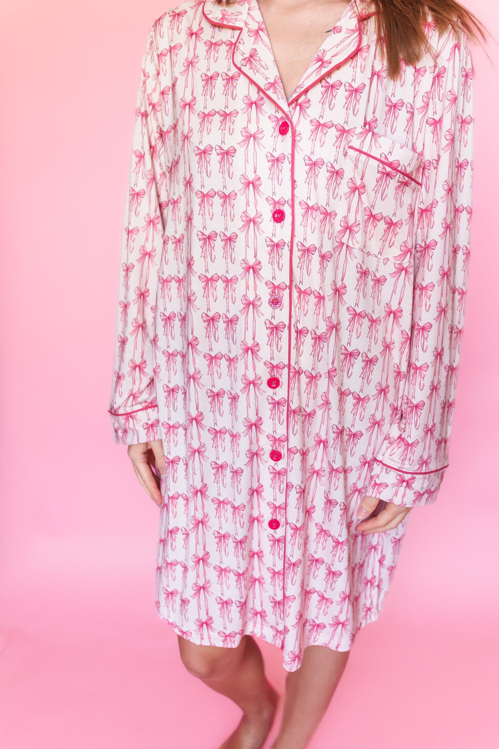Unwind in our Bow Cute Women's Dream Gown, made from soft bamboo material. The beautiful bow design adds a touch of charm to this women's night gown. Match your little one in this gorgeous gown and experience ultimate comfort. Sleep tight!