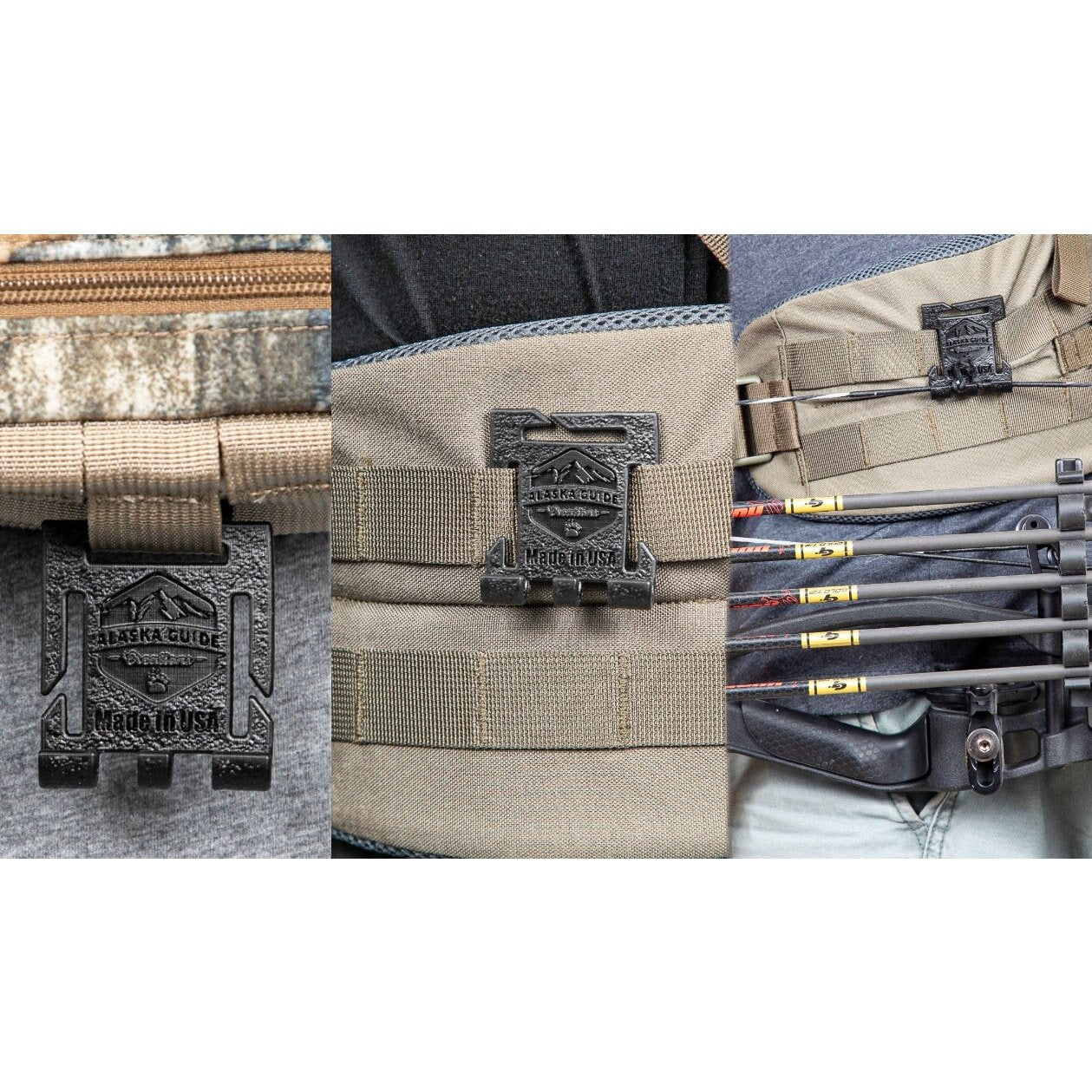 The Alaska Guide Creations Bow Hook is a light weight device that connects directly to the Ravus or Gen L Bino Packs, and allows you to hang the string or d-loop of your bow for hands free on the go glassing. It’s a simple one-piece design, 3D printed in the USA, and can connect to many other chest harnesses, backpacks, hip belts, and any 1" vertical or horizontal webbing.