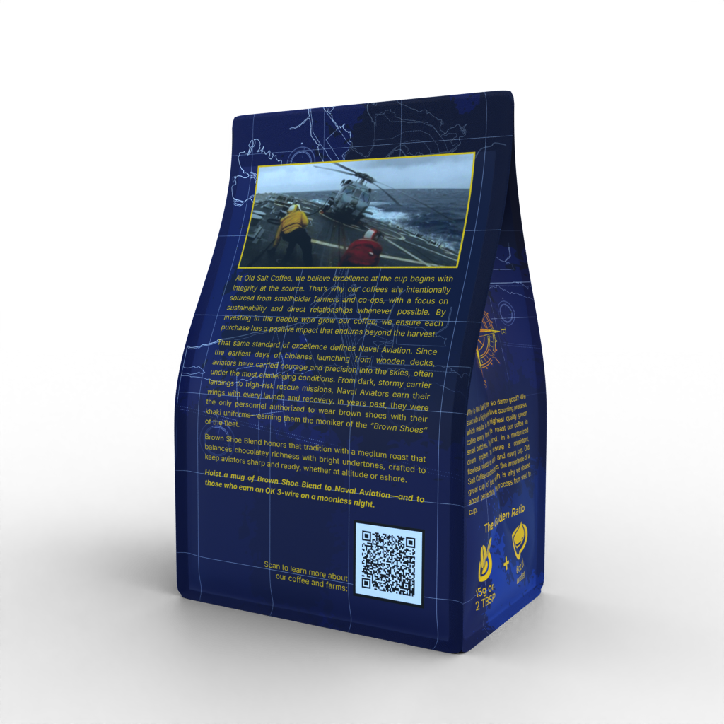 Brown Shoe Blend pays homage to the steely resolve of Naval Aviation professionals—men and women who embrace challenges with unwavering determination. Whether you’re gearing up for a demanding mission or savoring a moment of reflection, this coffee offers a robust companion that resonates with the adventurous spirit of those who serve.