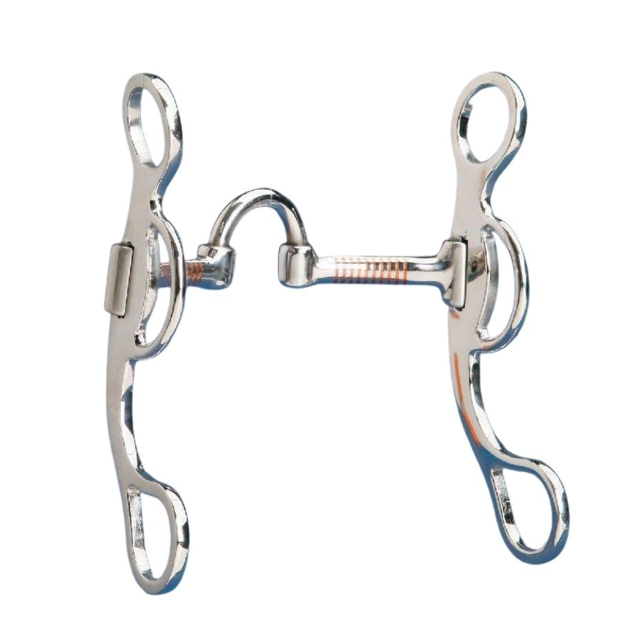The Brush Rider correction mouth bit has 4-rein connection options, brushed steel cheeks with long barrel mouth piece ends for the best mouth fit available. 6 1/4" cheeks and 5" mouths.