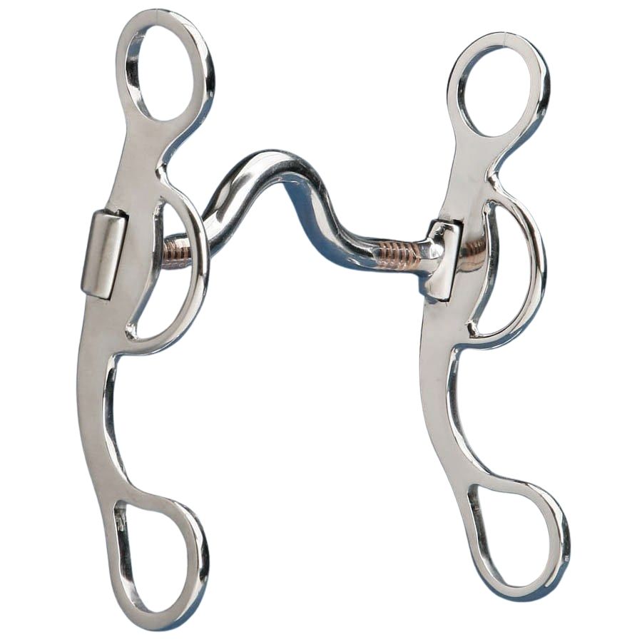 A great loose cheek curb. 6 1/4" brushed steel cheeks and 5" mouth with copper inlay. A great transition bit or as a tune up bit for older horses.
