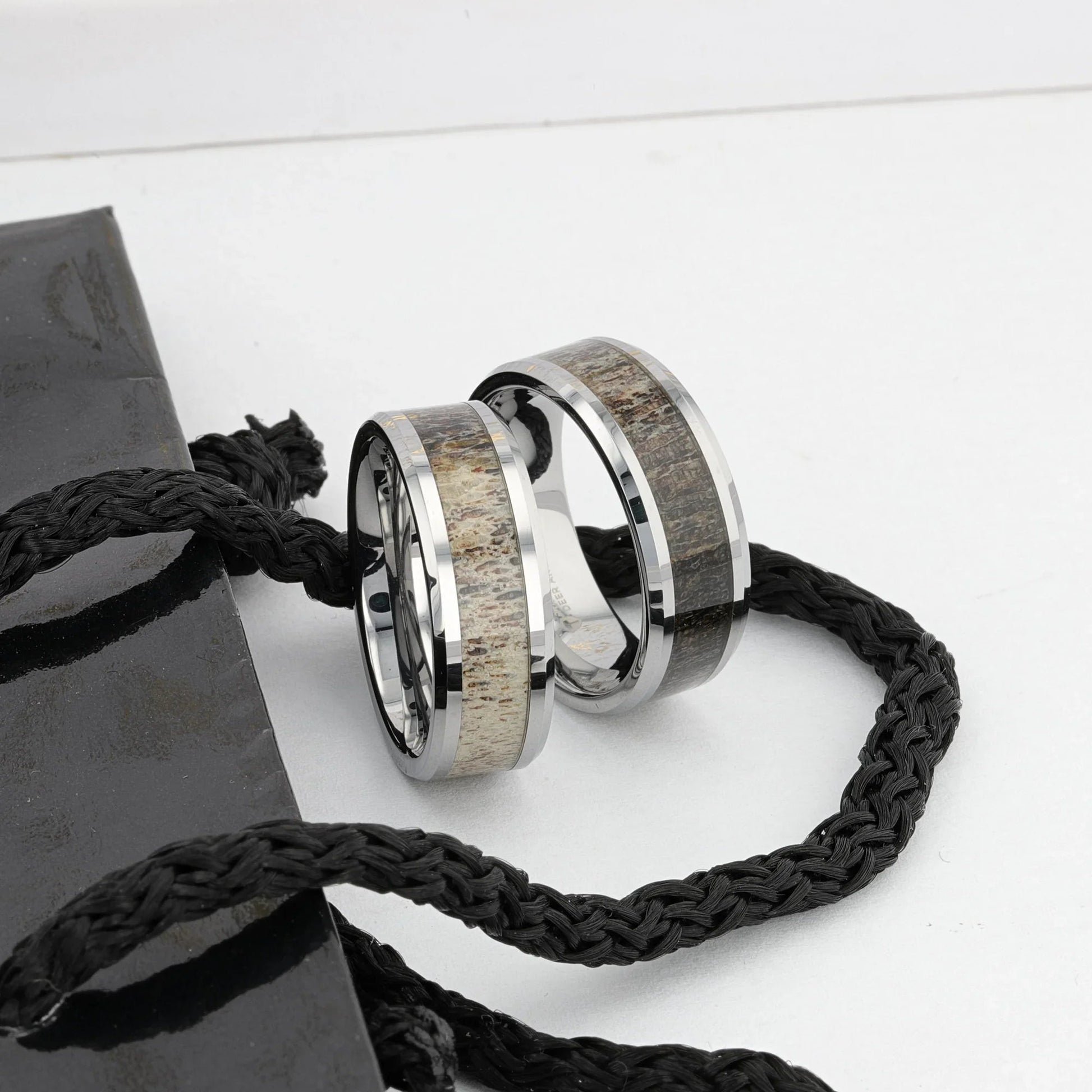BUCK Polished Beveled Tungsten Carbide Men's Wedding Band with Ombre Deer Antler Inlay - 6mm & 8mm