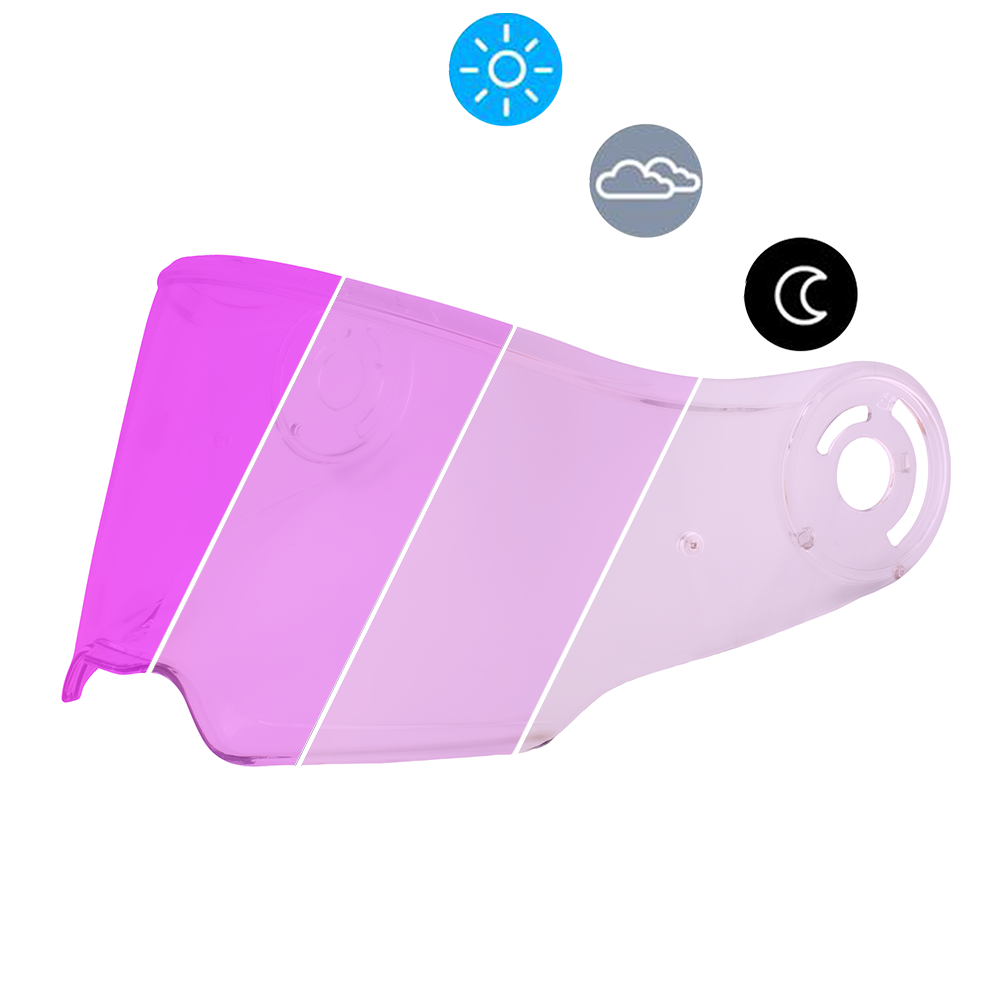 Our Daytona C6 Replacement Outer Shield In Photochromic Pink Fits The D.O.T. & ECE Daytona C6 & C6 PRO Helmets Only. This Photochromic Shield Adapts To Sunlight, Darkening In Sunny Conditions And Lightening In Cloudy Conditions. This C6 Outer Shield Replacement Features An Anti-Scratch Coating, REVO Coating And Is OptiVision 200 Prepared. This Outer Shield Is Also Available In Blue, Clear, Gold, Green, Mirror, Photochromic Blue, Photochromic Gold, Photochromic Green, Photochromic Red, Photochromic Smoke, Rainbow, Red And Smoke. **ONLY USE WARM WATER AND A MICROFIBER TO CLEAN**WARRANTY WILL BE VOIDED IF CHEMICAL CLEANERS OR MILD SOAPS ARE USED**