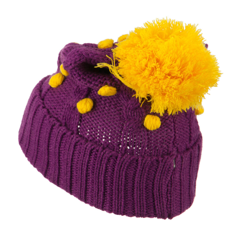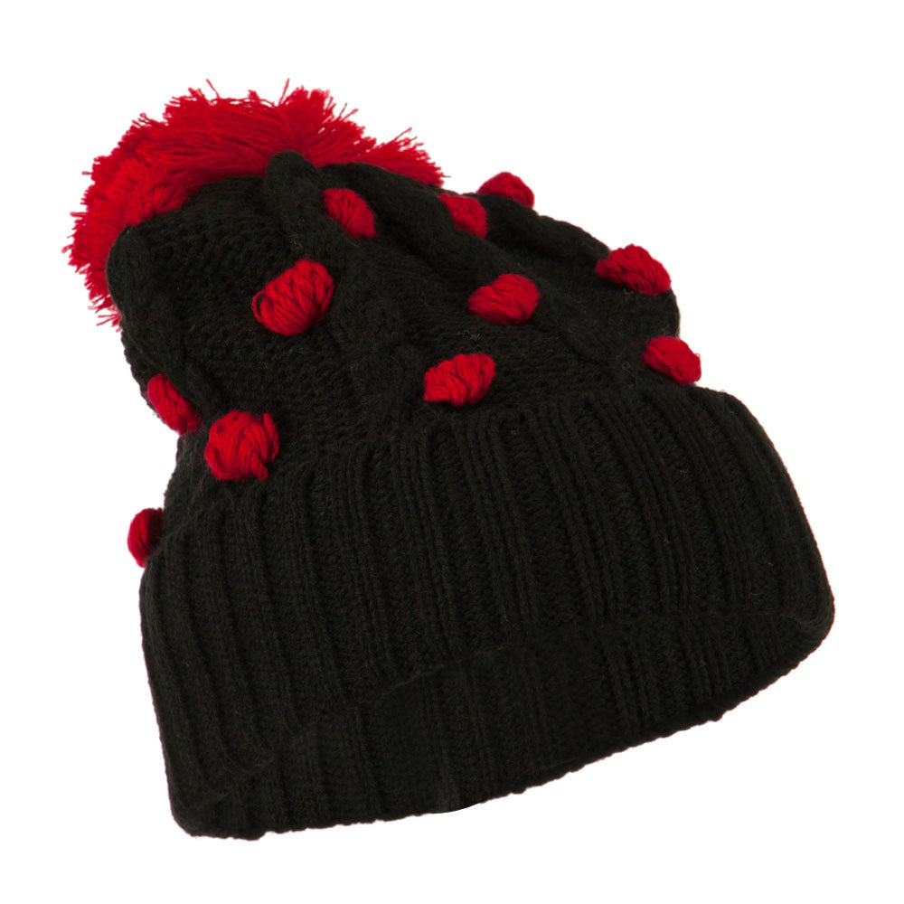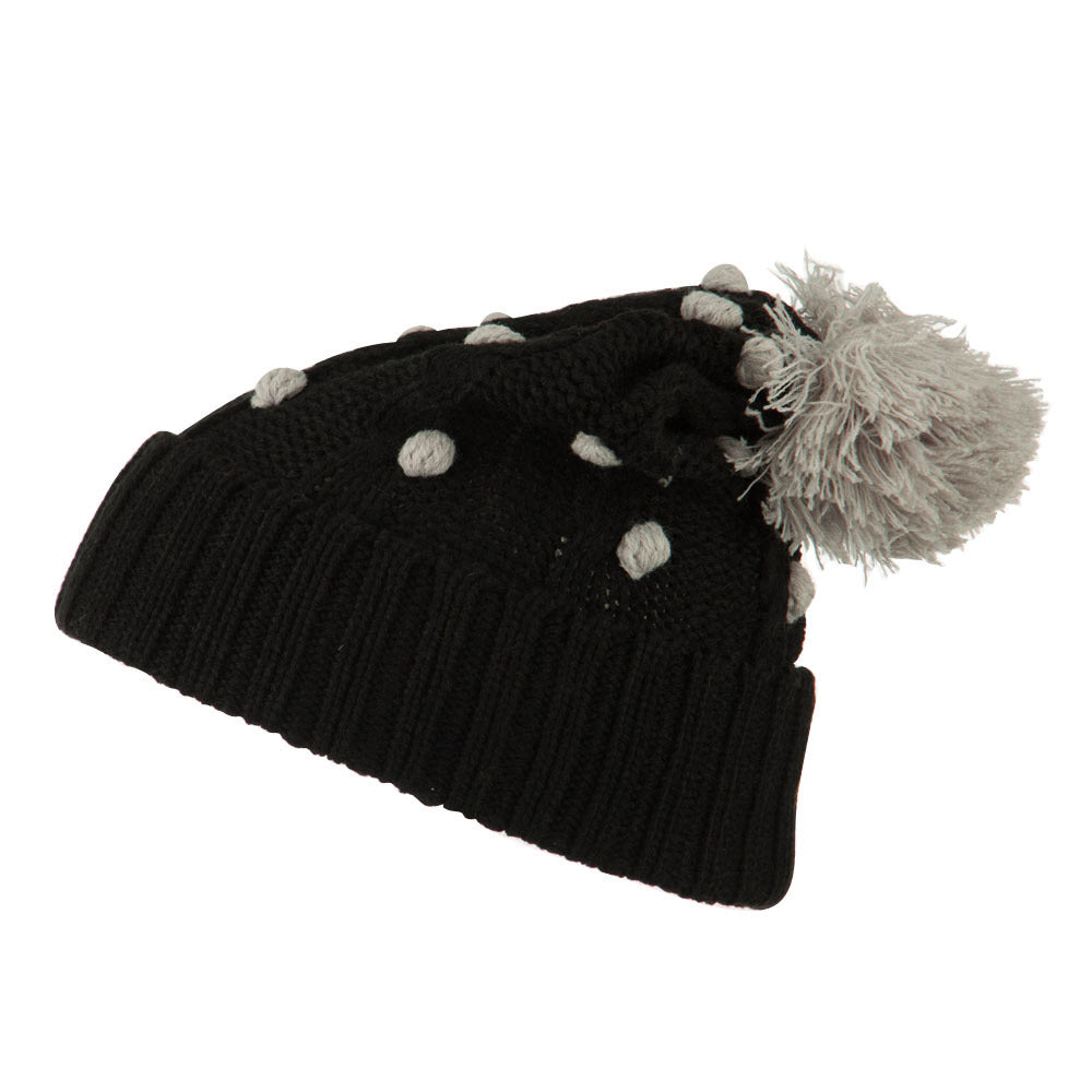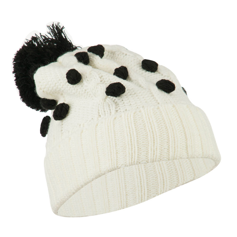Cable Polka Dot Pom Cuff Beanie