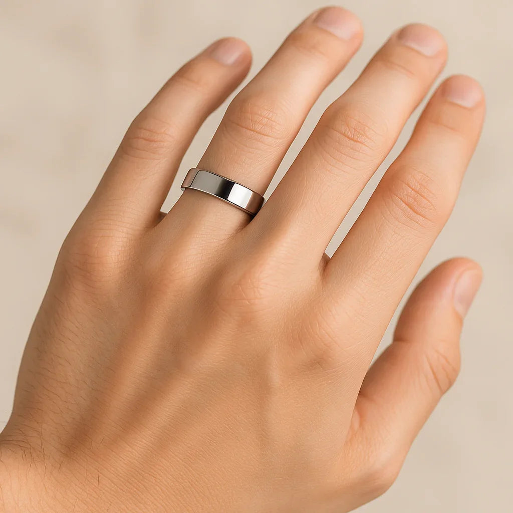 CALEDONIA Flat Polish Finished Cobalt Chrome Ring, Comfort Fit, 4mm–8mm