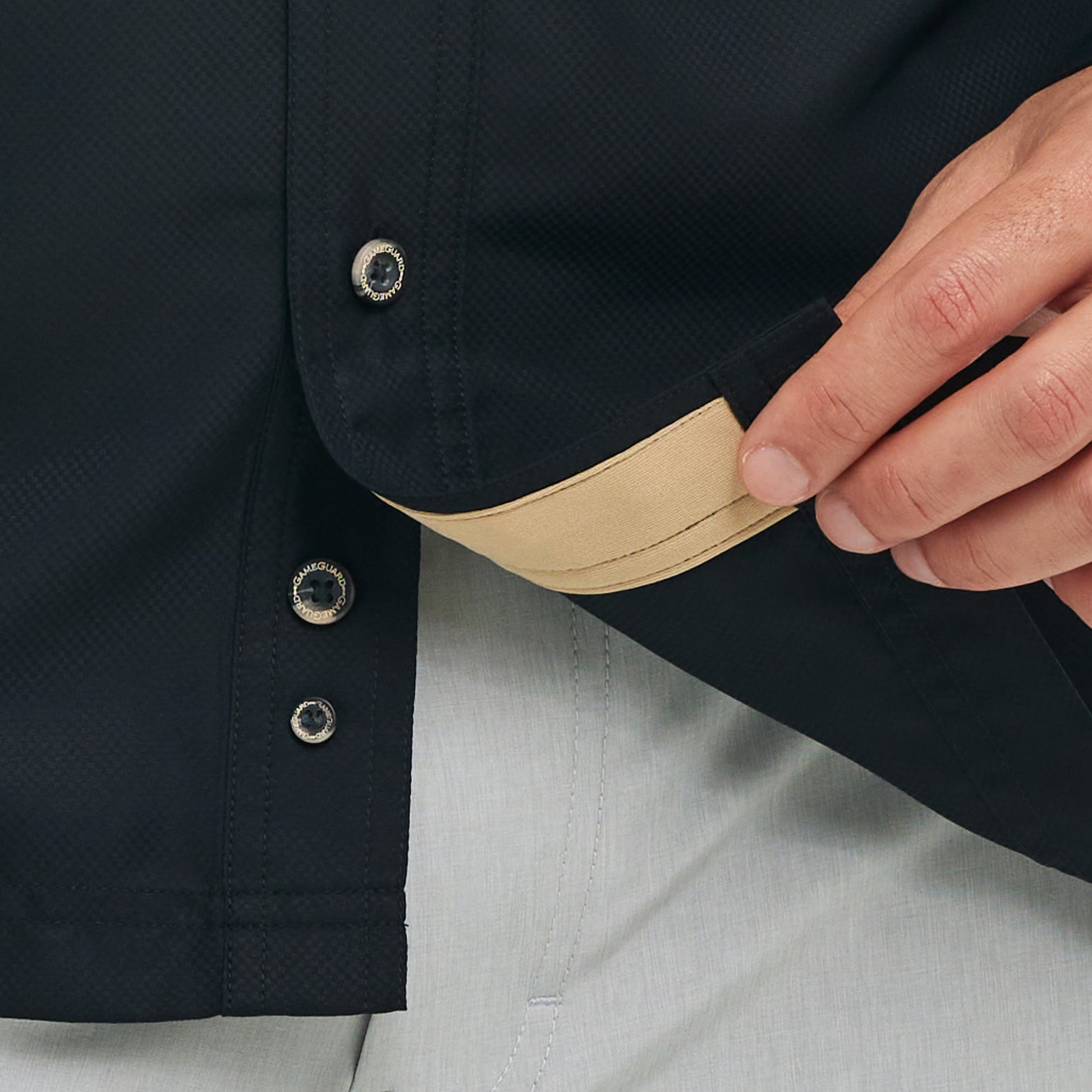 Gear up for the outdoors with the Explorer Shirt | Long Sleeve, crafted for ultimate versatility in the field. Featuring lightweight microfiber fabric with UPF 50+ sun protection, it's a reliable layer for extended hunting trips, fishing excursions, or all-day hikes. Mesh-lined vents at the chest and back keep air flowing, while the quick-drying and wrinkle-resistant design ensures lasting comfort. Button-to-bungee closures at the sleeves let you adjust for changing conditions, and hidden chest pockets provide easy access to essentials. Built-in stain resistance and a lens cleaner add durability and practicality, making it an excellent choice for rugged adventures. With a lay-flat collar and tagless design, this shirt merges performance with effortless style.