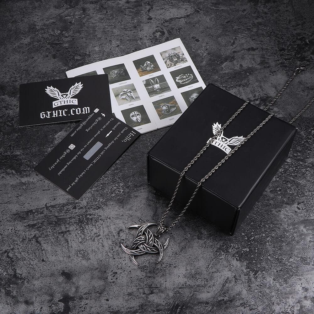 Triquetra is used as an ornamental design in architecture, and in medieval manuscript illumination (particularly in the Insular tradition). It represents the topologically simplest possible knot. Celtic Knots are believed to have represented faith, declare unity between people, and in some cases, protect against evil spirits. While the crescent symbolizes hope and new life. This pendant is meaningful enough to match your daily outfits.