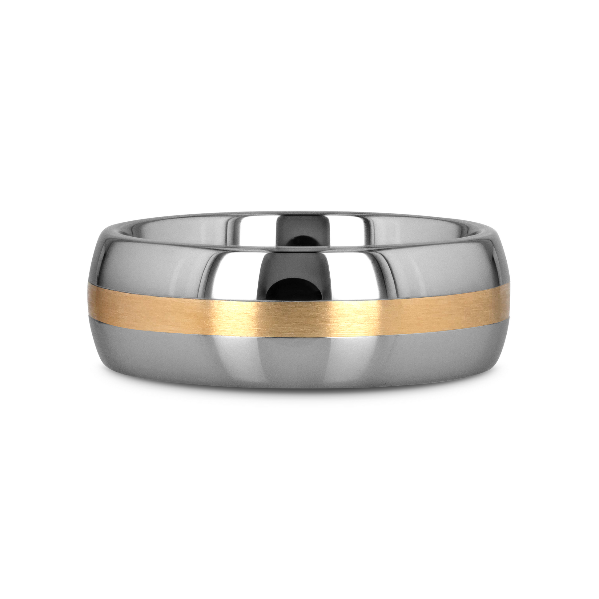 CENTURION 14K Gold Inlaid Domed Tungsten Ring 6mm or 8mm