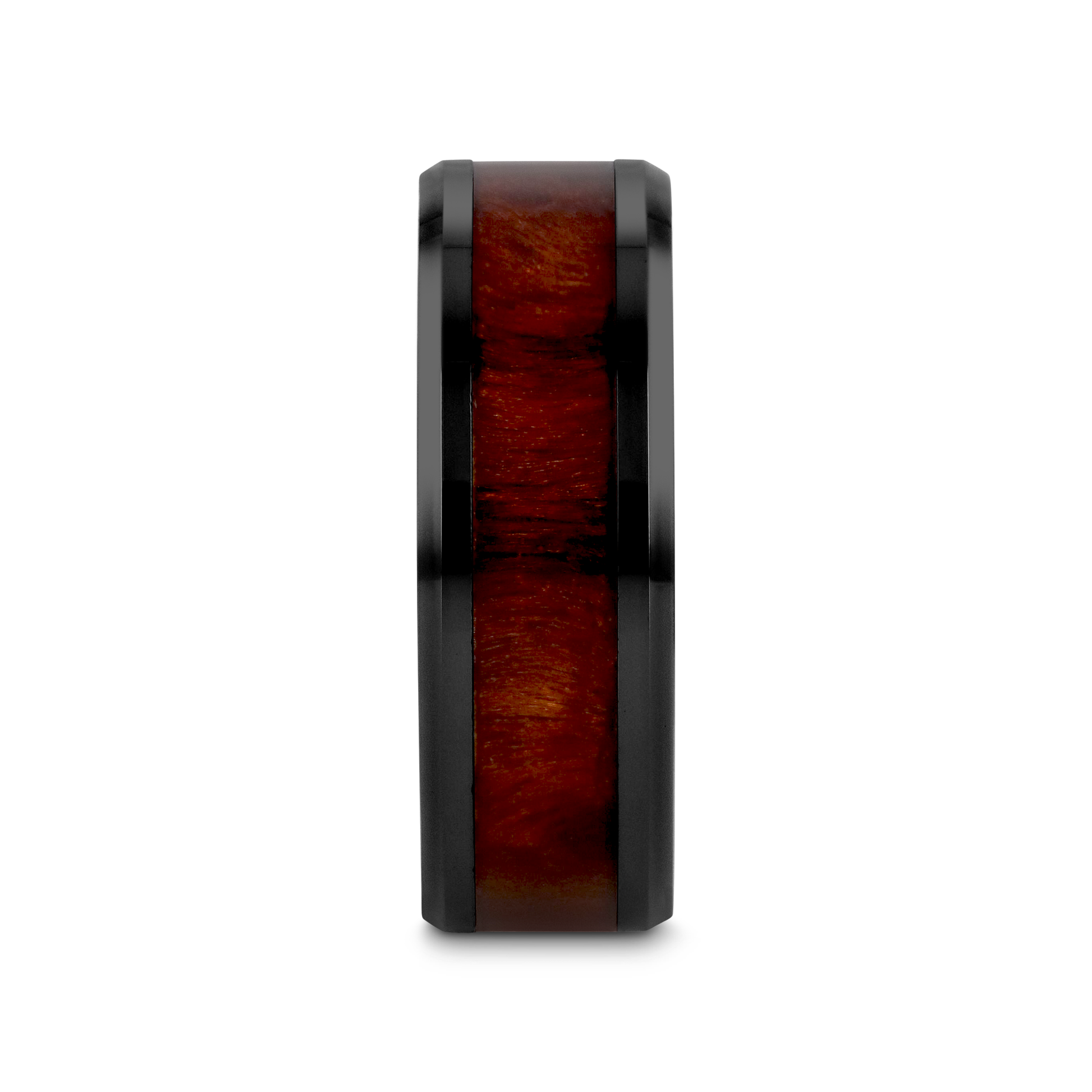 CERISE Redwood Inlaid Black Ceramic Ring with Beveled Edges - 8mm