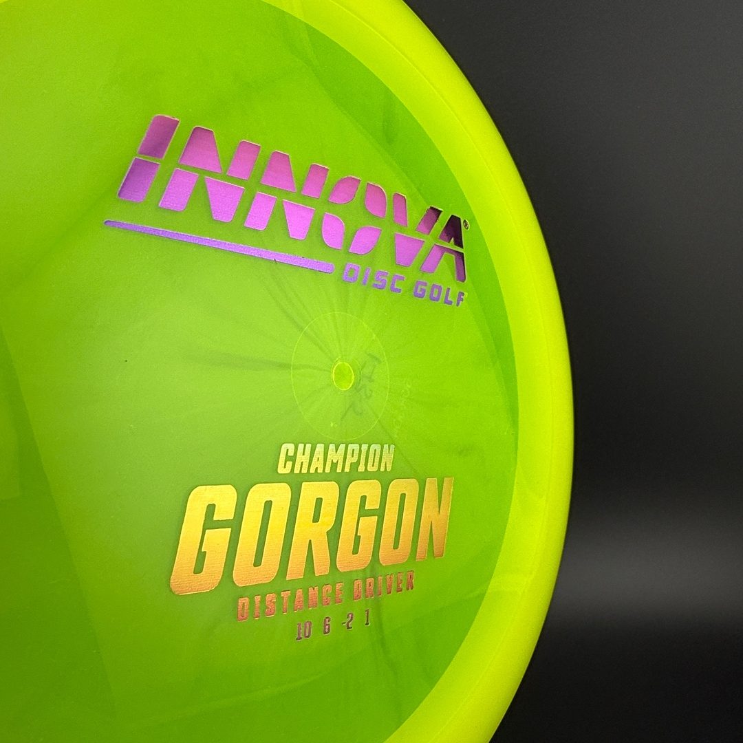 Introducing the Innova Gorgon, the disc that blends the precision and control of a Fairway Driver with the impressive reach of a Distance Driver. Its flight is characterized by an arrow-straight glide and a reliable fade, embodying the unwavering gaze of the mythical Gorgon. Experience legendary performance—drive like a deity and conquer the course with the Gorgon.