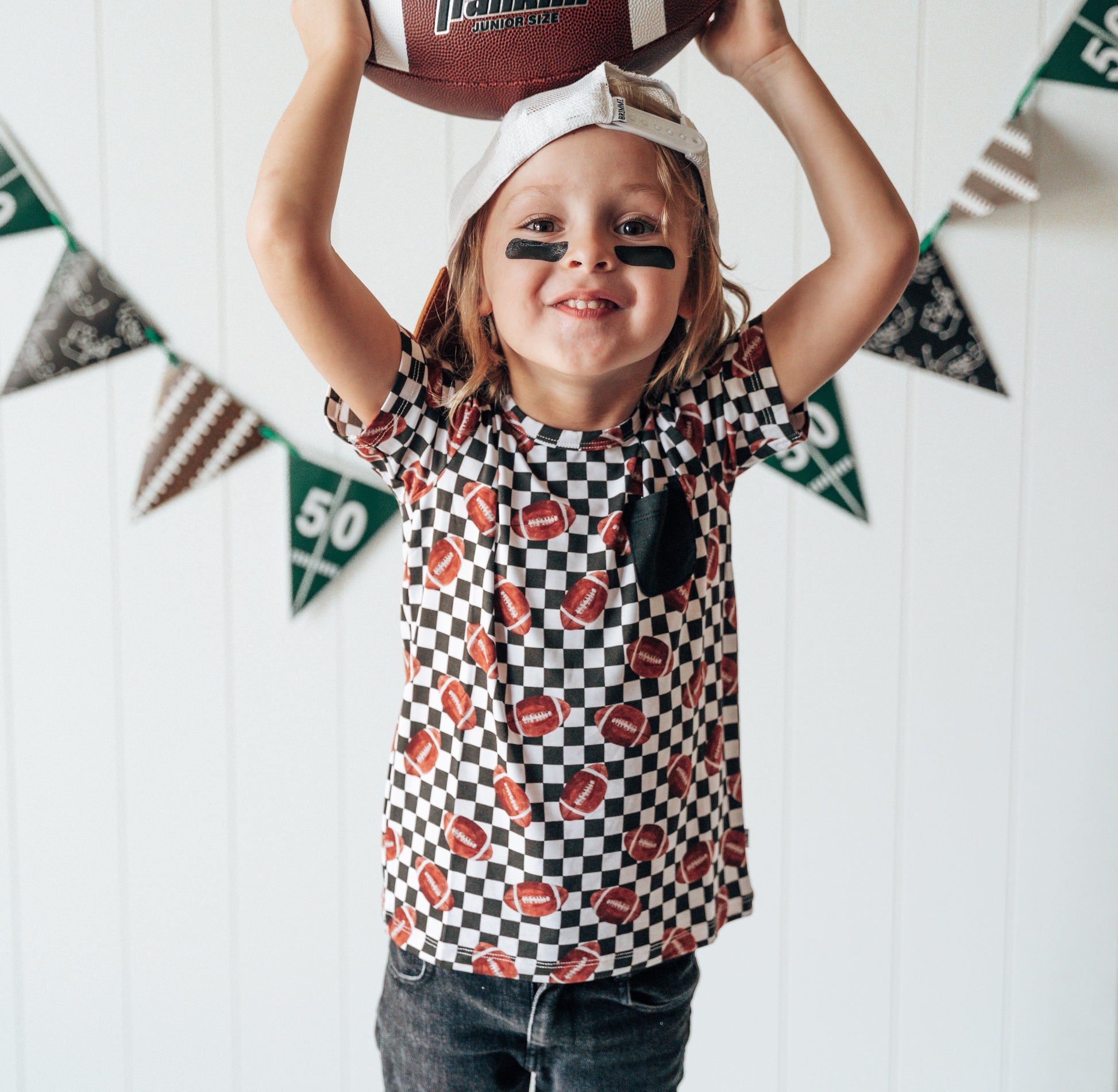 Bring the future stars of your family's football dreams right into the present with this awesome Checkered Football Dream Pocket Tee! With its unisex design, it's perfect for any kiddo who's ready to score big! Goooooooal!