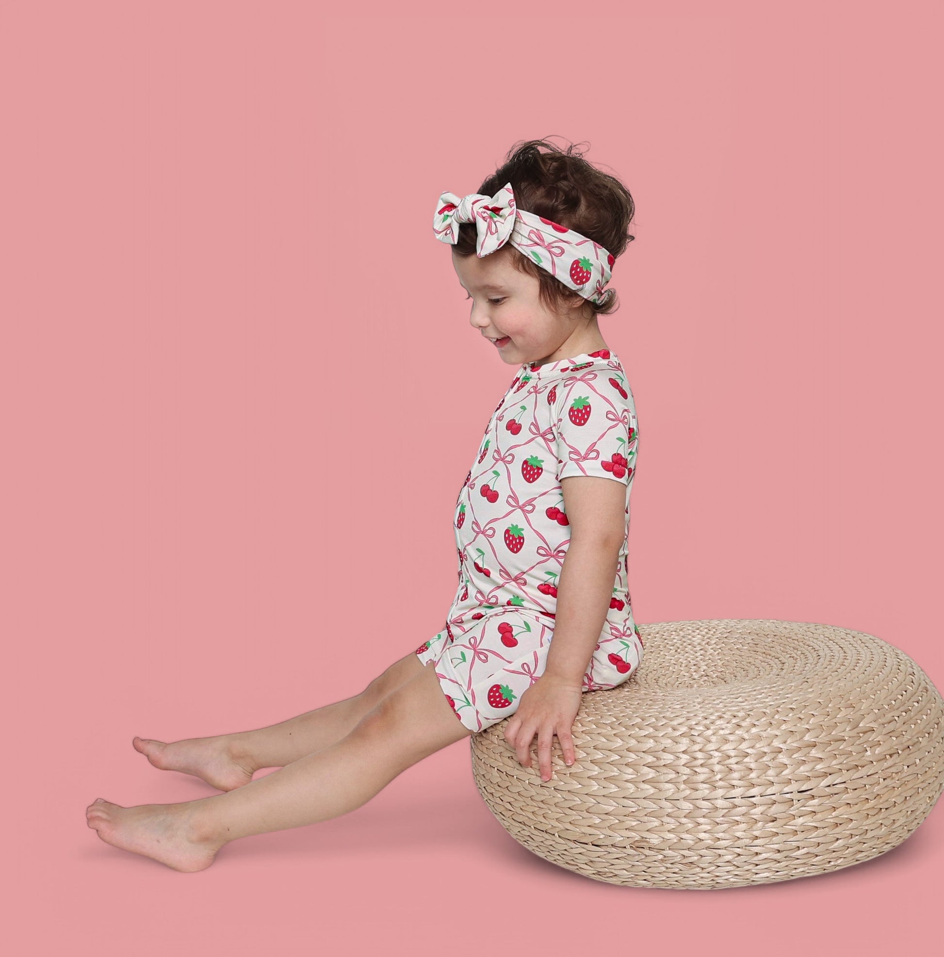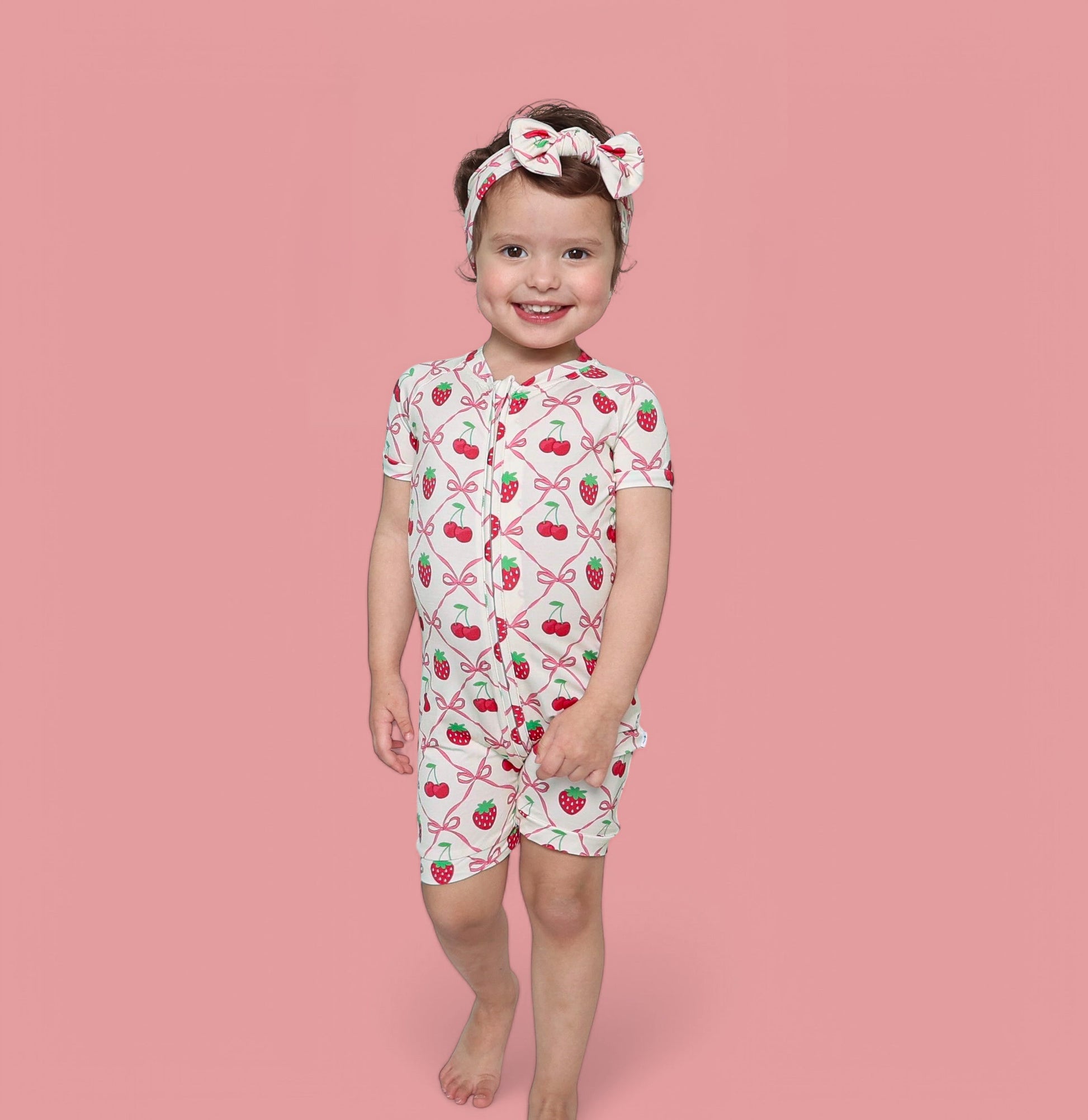 Add a burst of sweetness to your little one's wardrobe with the Cherry Bow Berry Dream Shortie! Featuring a playful design with strawberries, cherries, and delicate bows, this adorable romper is perfect for bringing a touch of fun to any sunny day. Ideal for active little ones, it transitions easily from playtime to naptime.