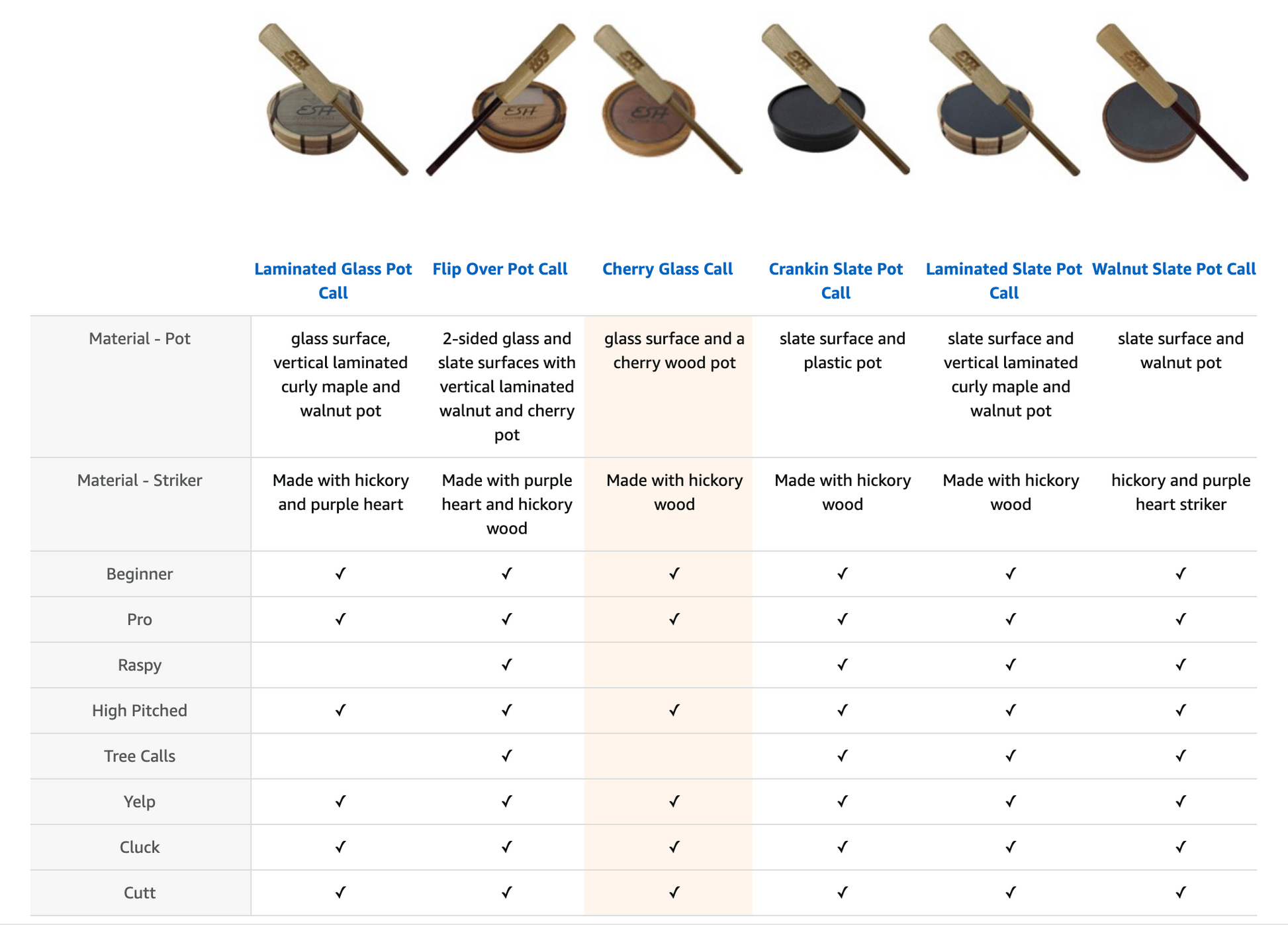 EASY TO USE - Whether you're a beginner or a pro hunter, this glass turkey pot call makes deep-rich seductive hen sounds with excellent volume. The one piece hickory striker gives you the perfect match to make those hard to reach tones.