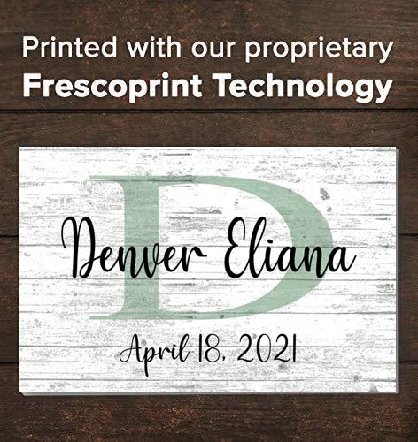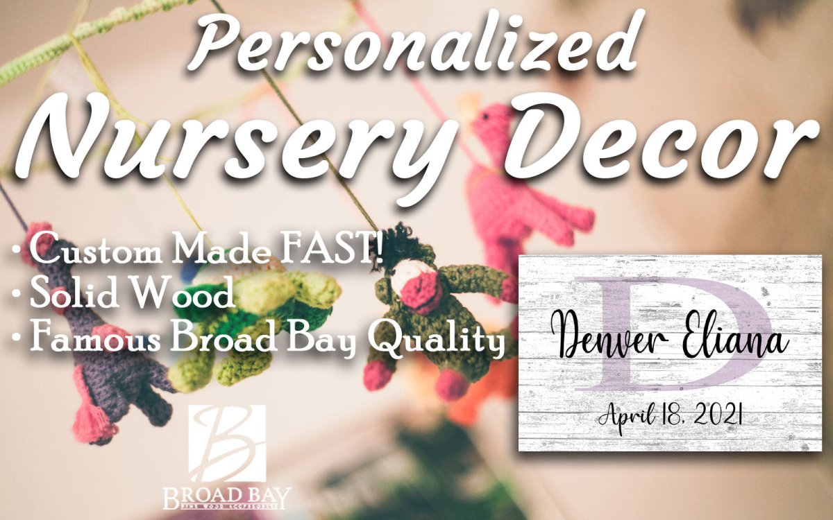This unique Broad Bay personalized baby or child's name monogram sign makes a great gift for any special child - son, daughter, grandson, granddaughter or godchild. Perfect for nursery or children's bedroom decor. Broad Bay only uses solid wood for the highest quality kids monogram name signs. Custom created daily in Virginia Beach, our girl's monogram signs feature our unique Fresco Print process that actually embeds your custom name and birthday design into the surface of the solid wood sign for a long lasting and vibrant appearance. Personalized fast, our customized baby name monogram and birth date signs make the perfect gift for any special child or parents of a new baby!