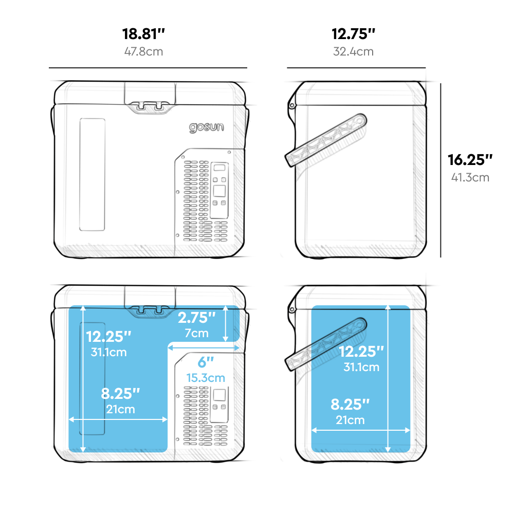 Portable car fridge for traveling, trucks, vans, boating, and camping. This lightweight electric cooler keeps your food and drinks cool, dry, and organized without the need for ice and can be used for charging devices. Great for tailgating, picnics, and watching the game.