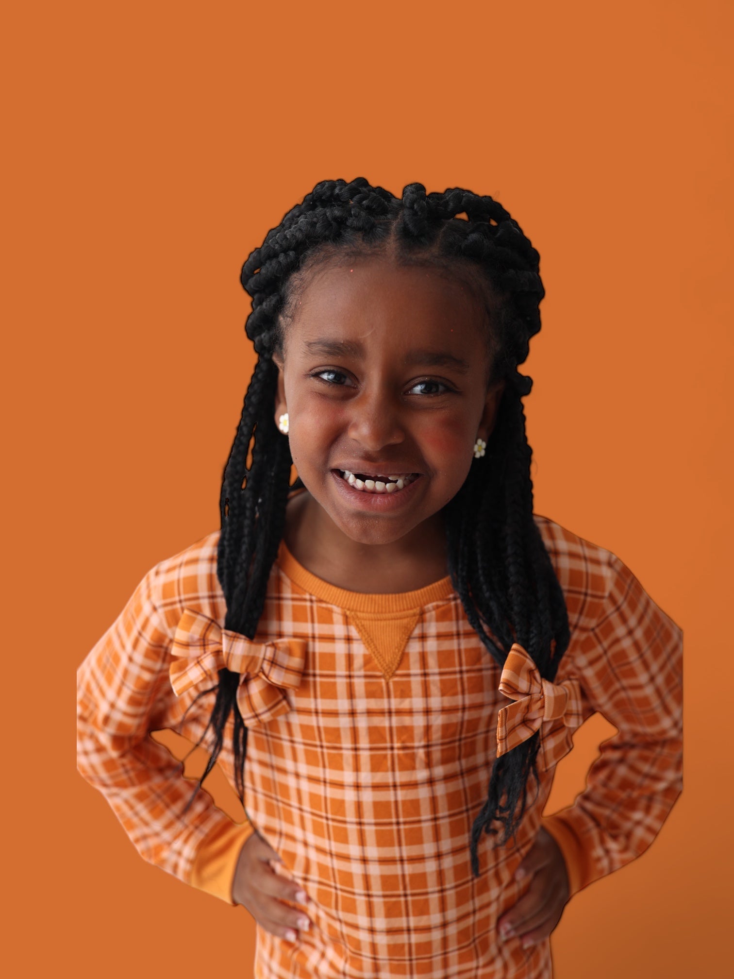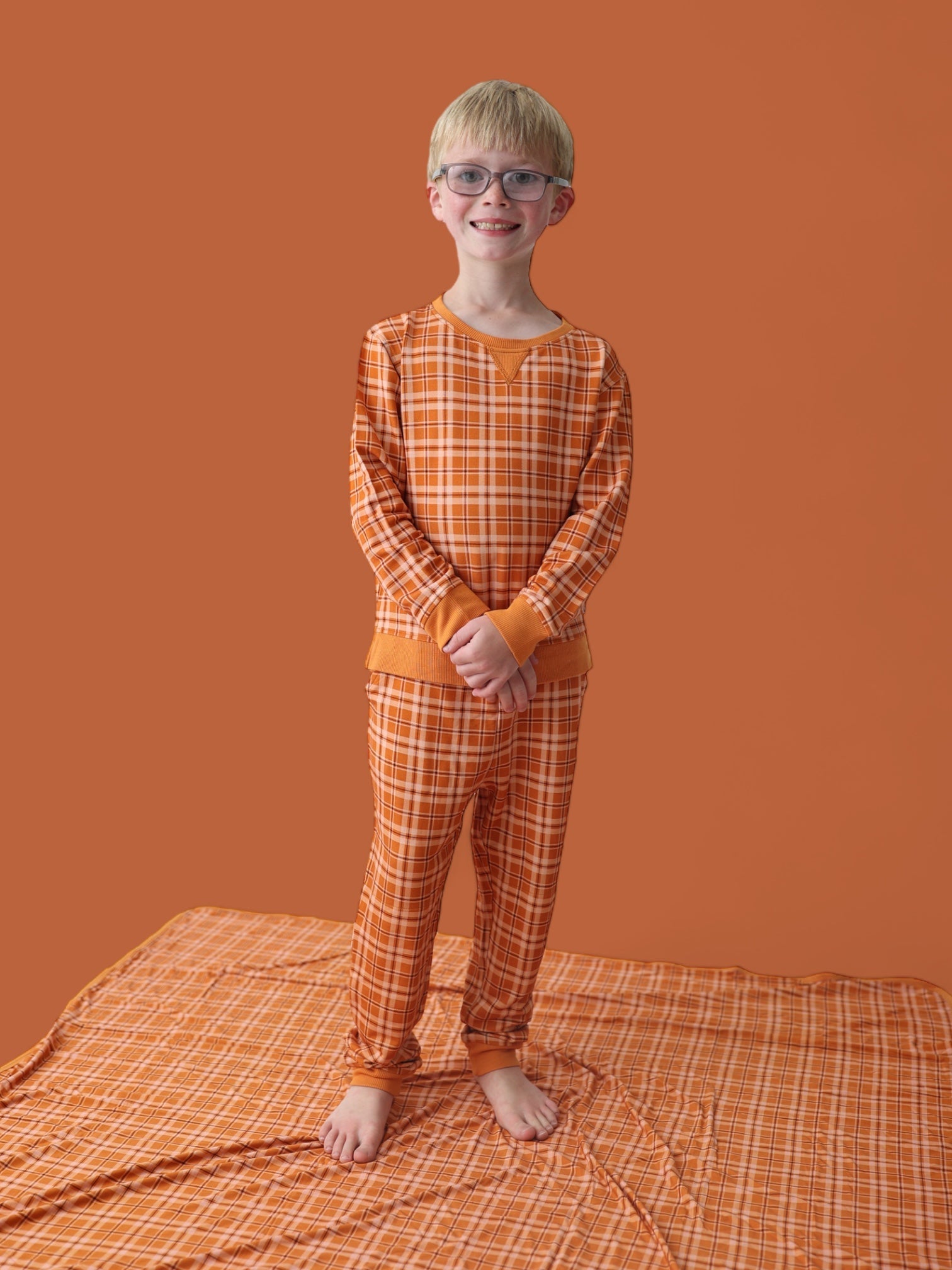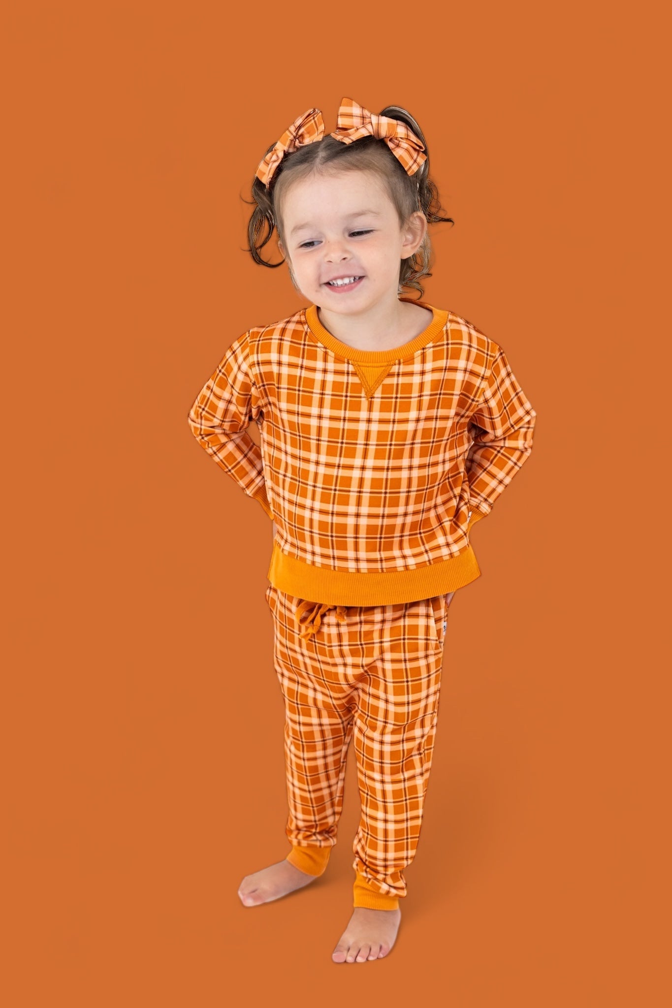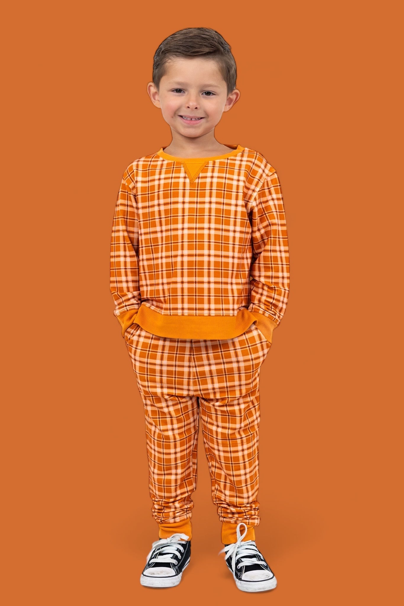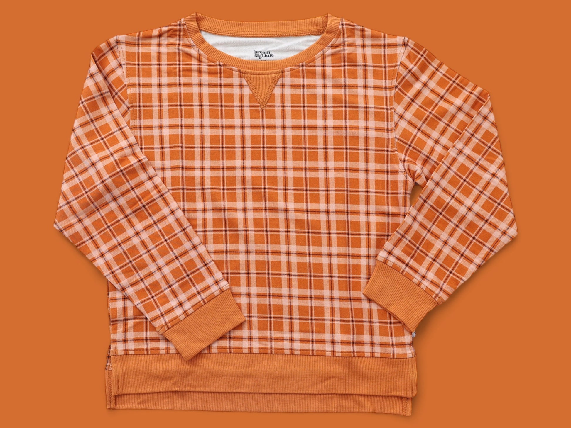 This versatile Cider Plaid Pullover pairs effortlessly with our Cider Plaid Dream Joggers for a complete and stylish look. Made with a cozy material and a classic plaid pattern, this pullover will keep you warm and fashionable. Perfect for any occasion, its timeless design adds a touch of sophistication to any outfit.