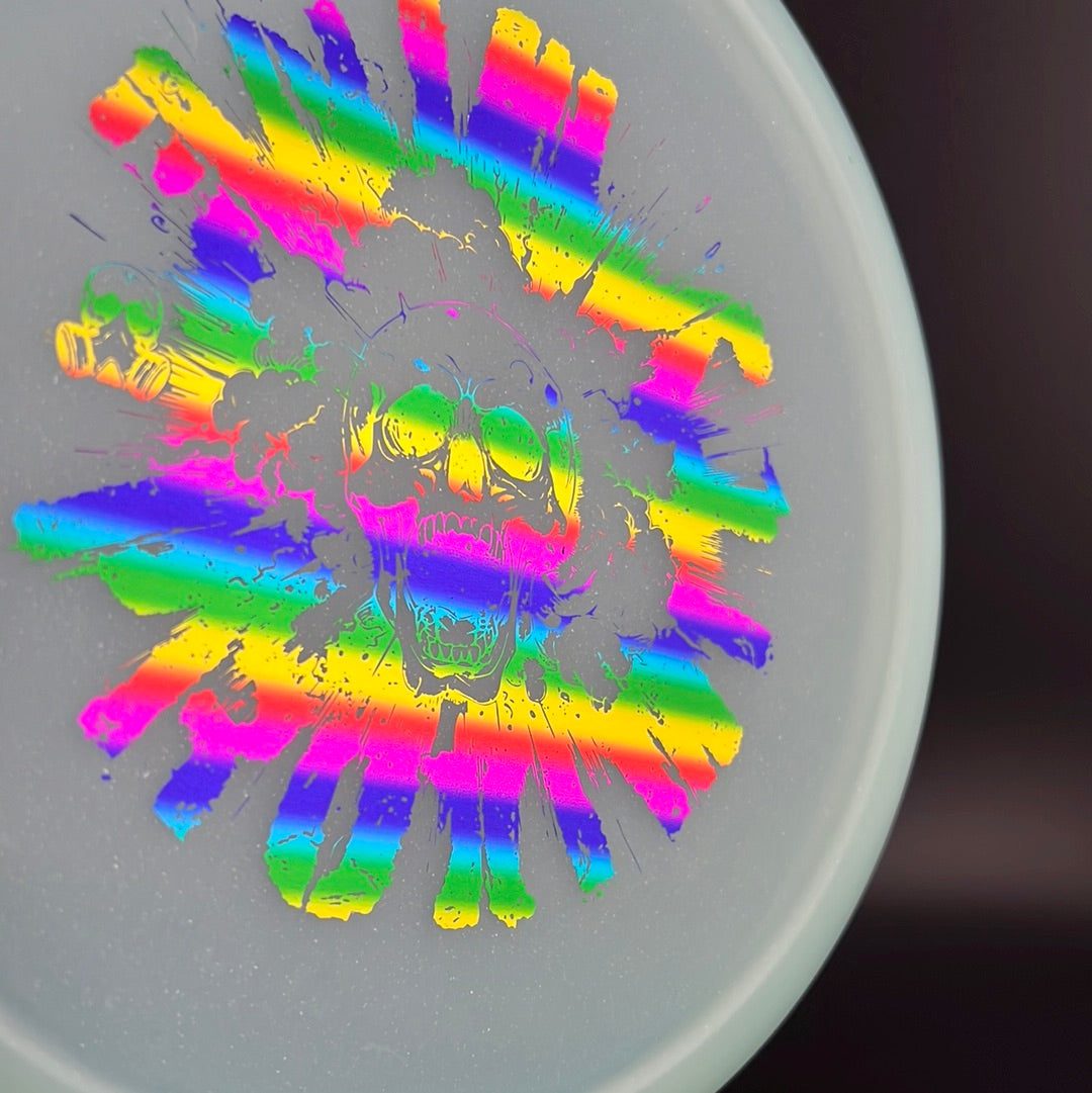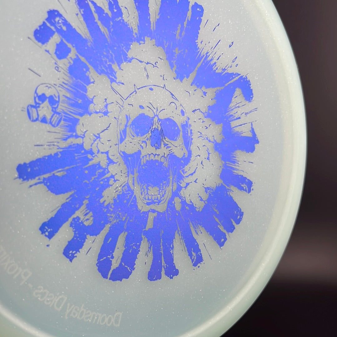 2/3/0/1.5 Minor variation possible, multiple available. Scaled Weights. New putter / approach disc from Doomsday Discs in the sparkly Clandestine plastic!