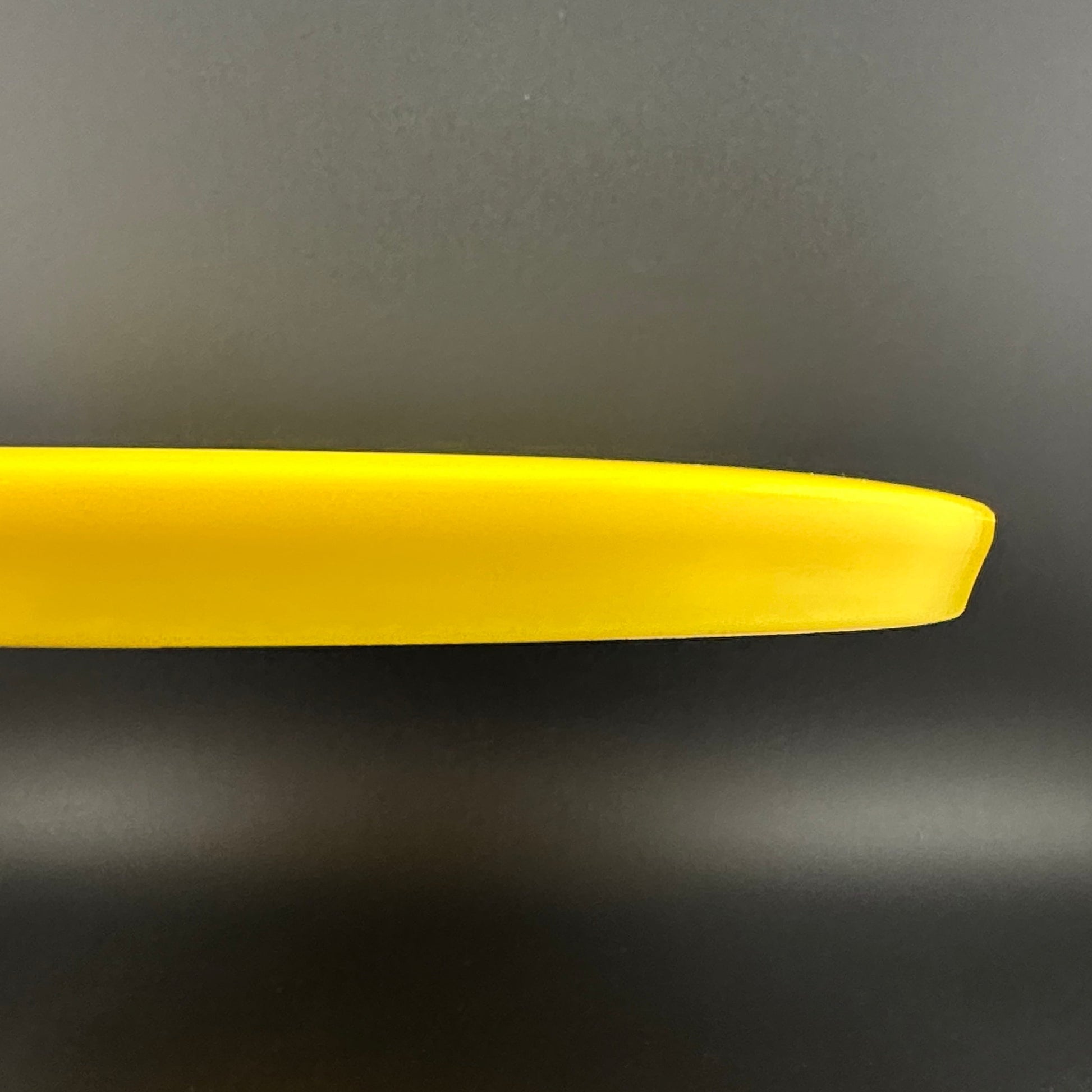 The Proximity Mine is another approach putter in the “Land Mine” family. It’s a large, boxy putter but with a more overstable, angled rim and a thumb track on the top of the flight plate. It is a stable, slow-speed approach disc that is great for short throws where accuracy is important and overthrowing the target is unwanted.
