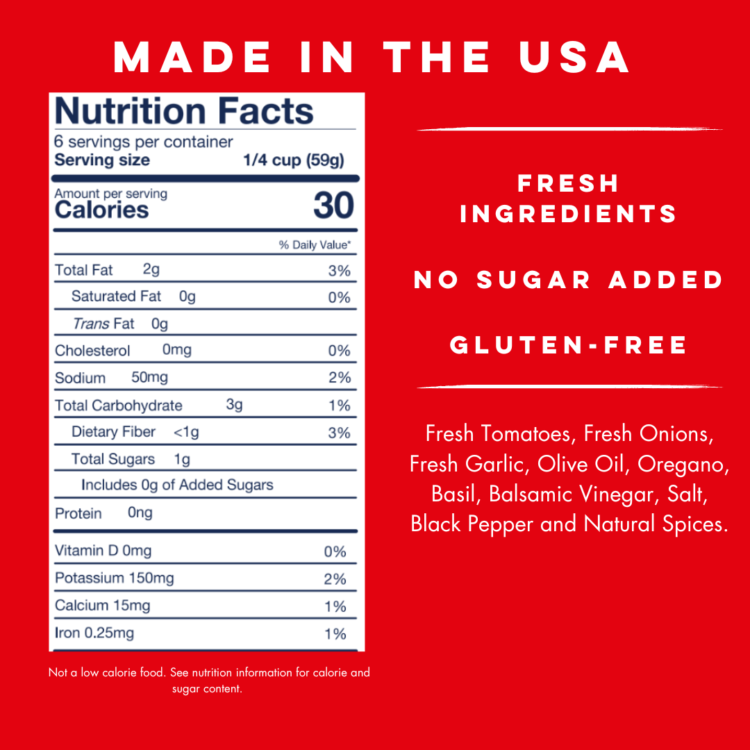 Yo Mama’s Classic Pizza Sauce is meticulously crafted from fresh tomatoes, garlic, onions, olive oil, and basil. Created with care in small batches, our Mama-approved recipe is Keto friendly and is completely free from added sugar, GMOs, preservatives, dairy, and gluten.