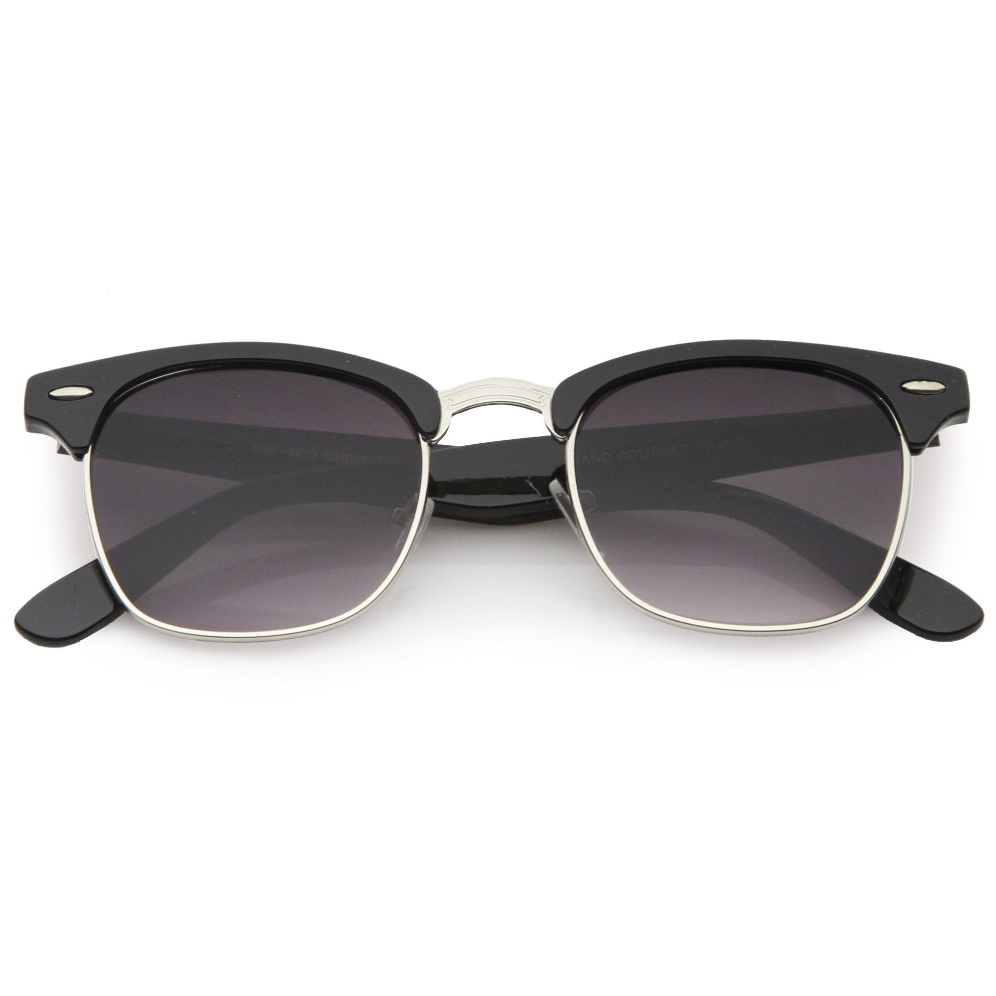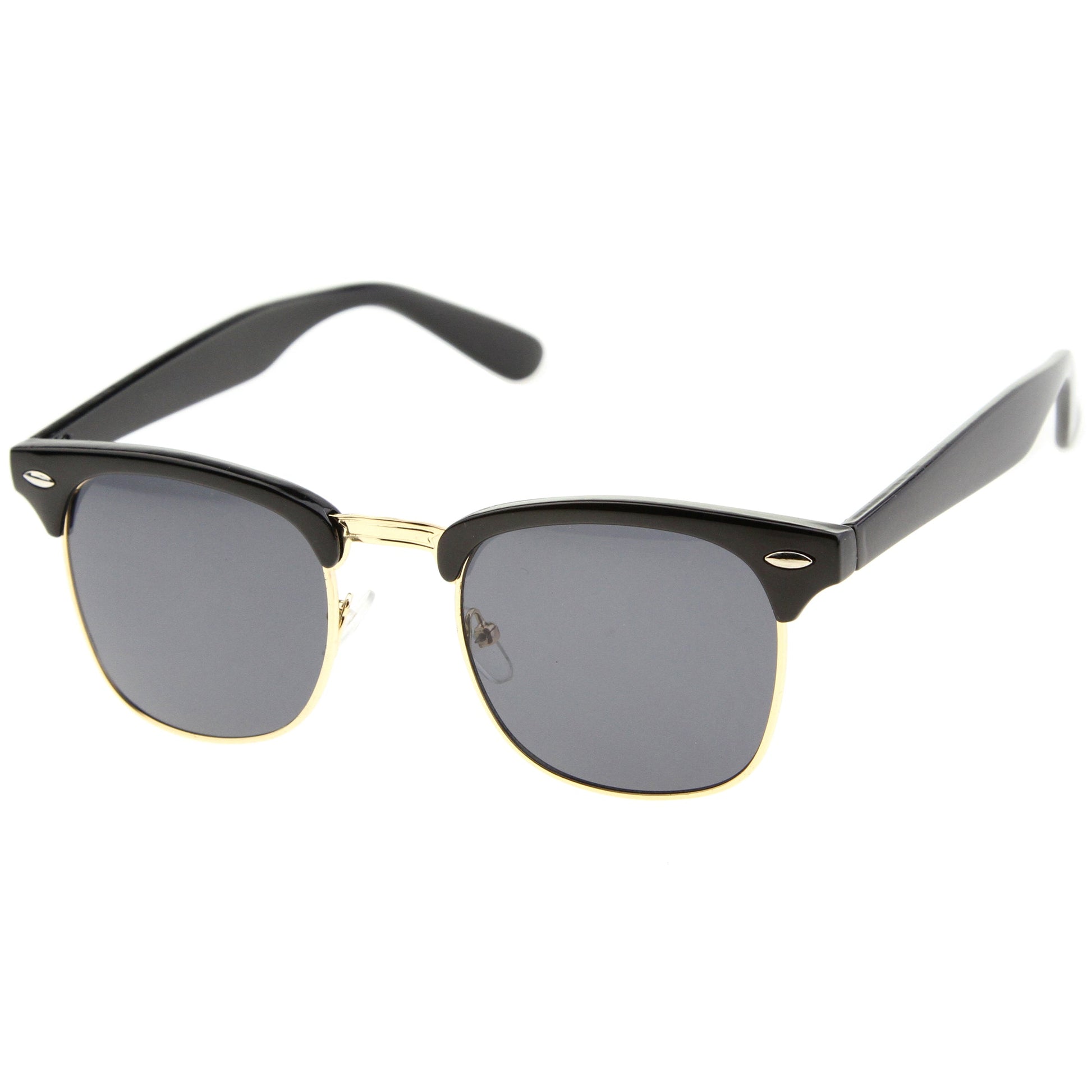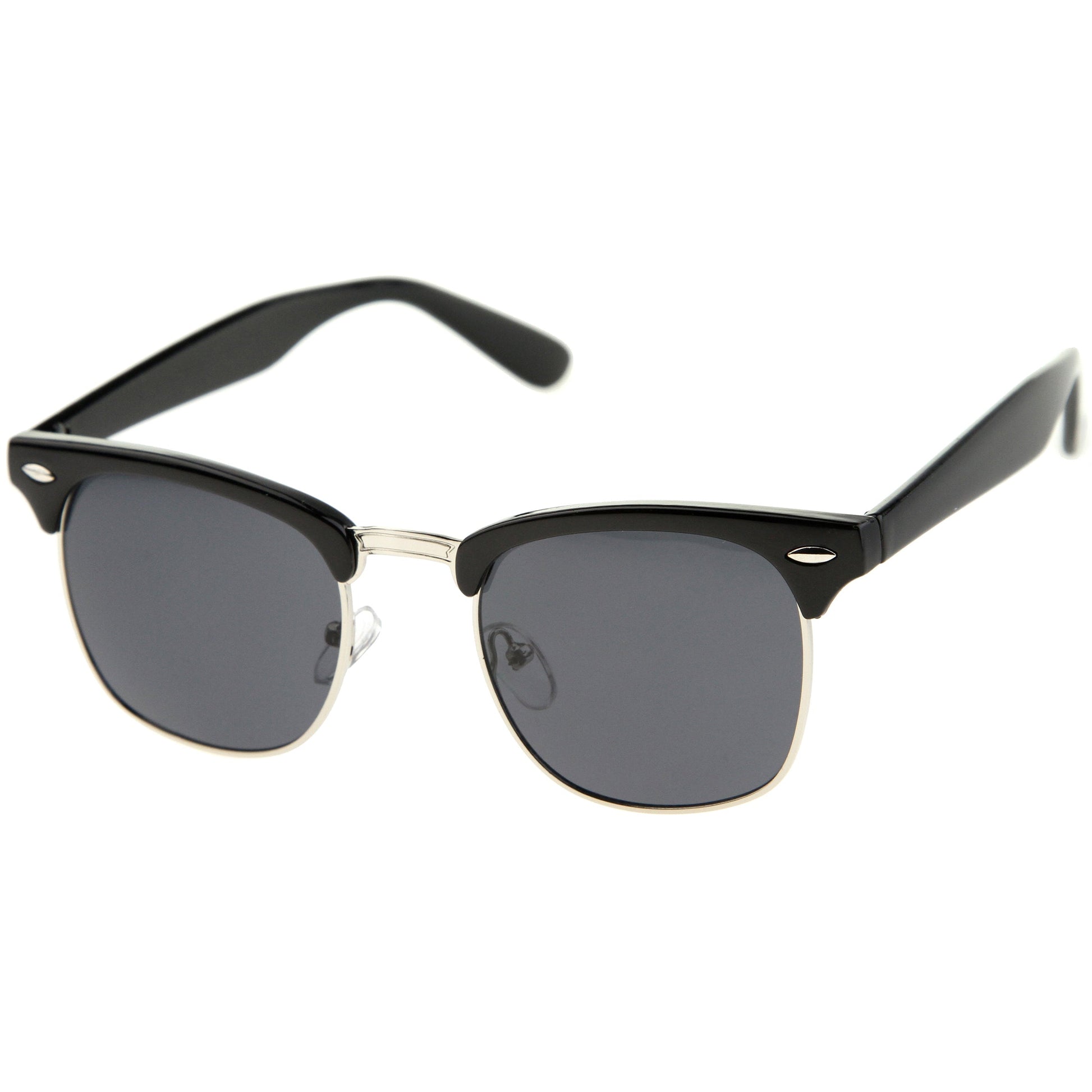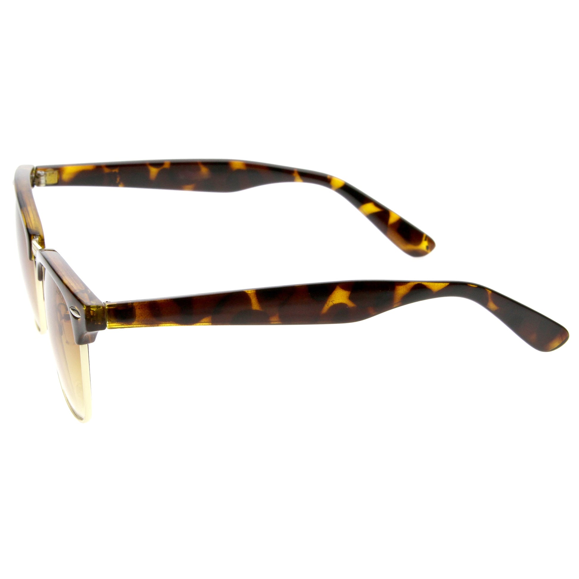 - A classic frame with versatility, these semi rimless sunglasses are designed with a subtle horn rimmed frame and stylishly wide arms. Neutral colored square lenses make them great for everyday wear, while the metal trim add a sleek touch. This style is can be paired with any outfit and style. Made with a plastic and metal based frame, adjustable English style nose pieces, reinforced metal hinges, and 100% UV protected lenses.
