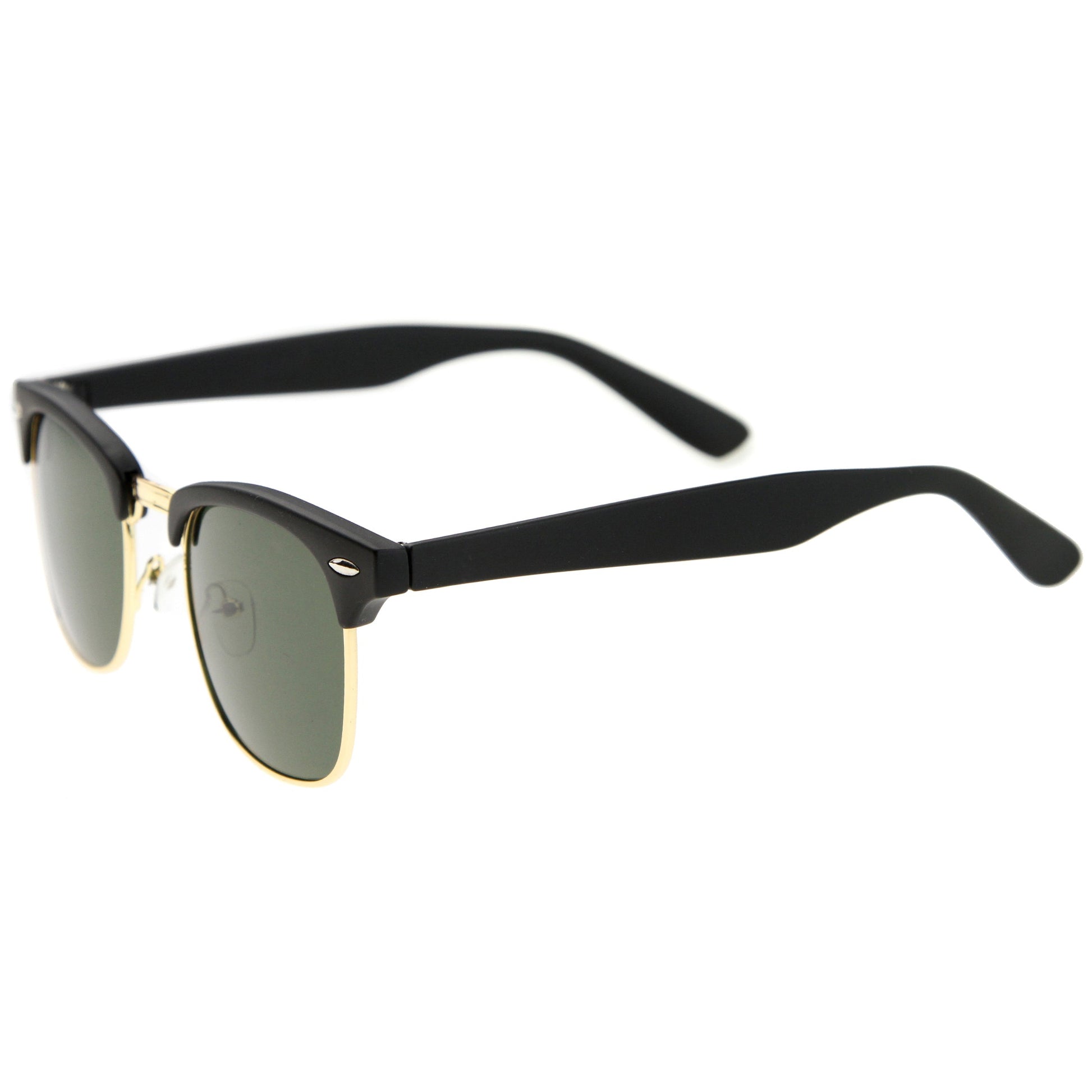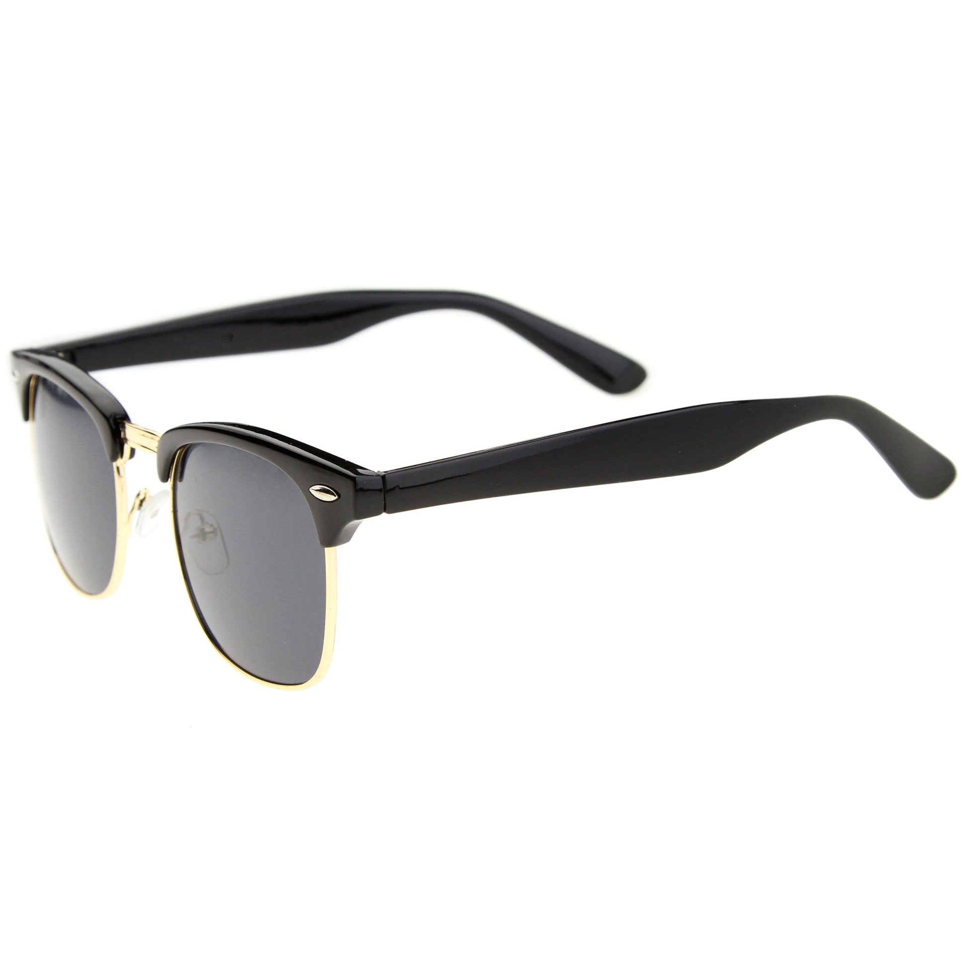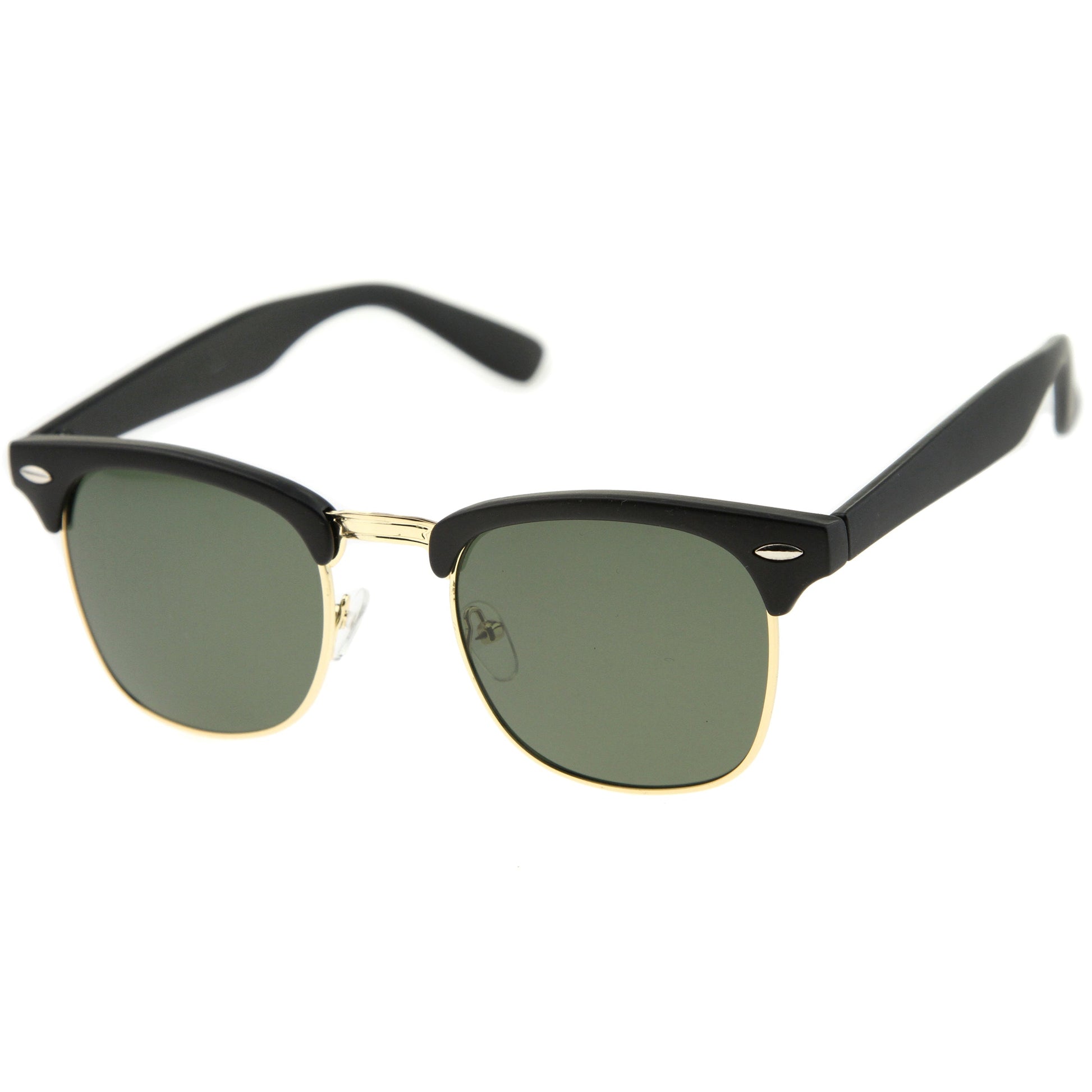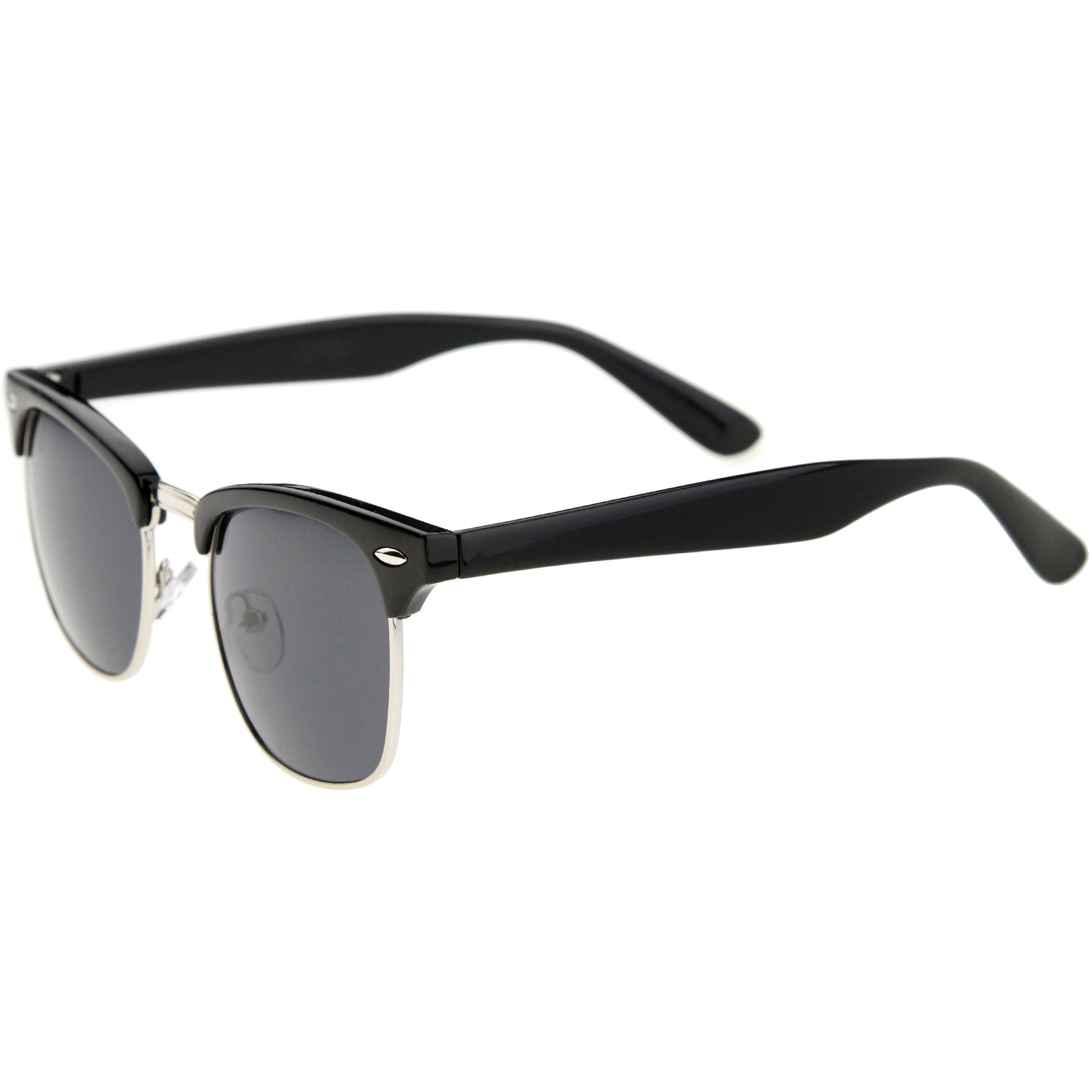 - A classic frame with versatility, these semi rimless sunglasses are designed with a subtle horn rimmed frame and stylishly wide arms. Neutral colored square lenses make them great for everyday wear, while the metal trim add a sleek touch. This style is can be paired with any outfit and style. Made with a plastic and metal based frame, adjustable English style nose pieces, reinforced metal hinges, and 100% UV protected lenses.
