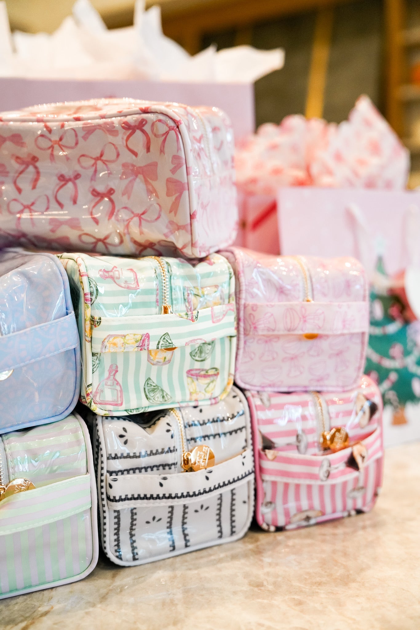 - the cutest new dopp kit on the market; our clear coat bags with unique prints are the perfect makeup bag!
