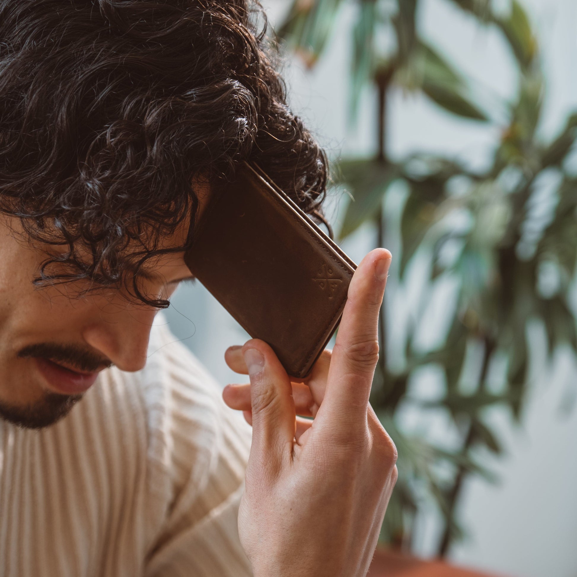 Ultra-thin at just 0.2 inches and featherlight at 1 ounce, this wallet redefines portability. Crafted from top-quality cowhide leather, it features a magnetic closure, a quick-access pull tab for your most-used cards, and a hidden slot for a wallet tracker card.