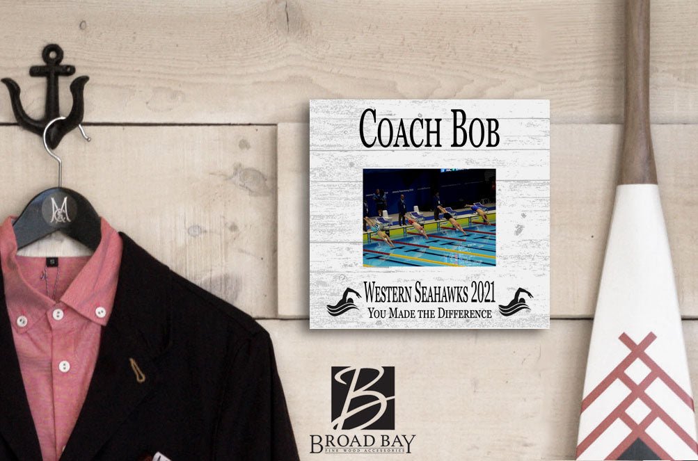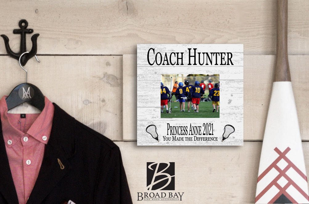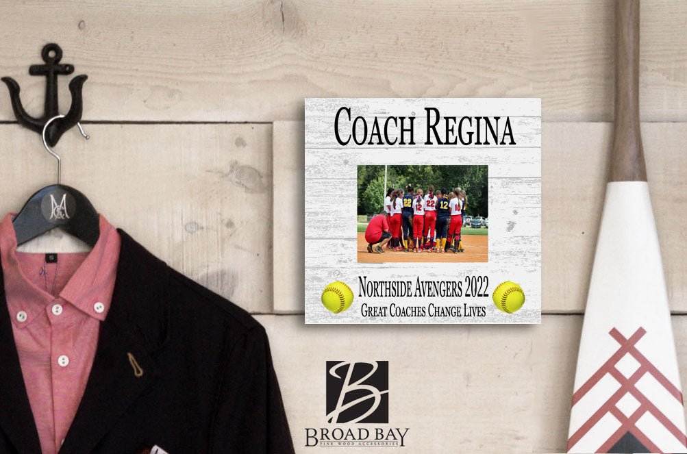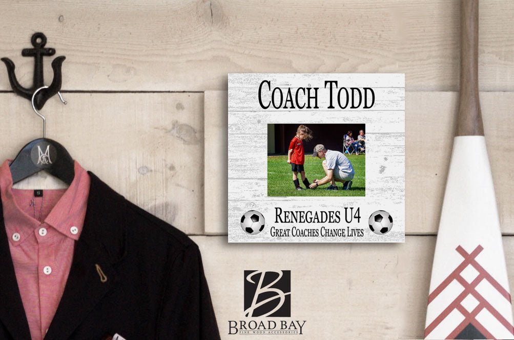Broad Bay Custom Coach Gift Frames are the best way to show your team's appreciation for a great coach. Our Coach Gift Frames are personalized with the coach's name, a team name, and a personal note or slogan. Choose your team sport from our selection of the some of the most popular school and youth league team sports. Soccer, Baseball, Football, Basketball, Softball, Track, Cross Country, Swimming, Tennis, Golf, Field Hockey, Cheer, Gymnastics, Lacrosse and Volleyball.