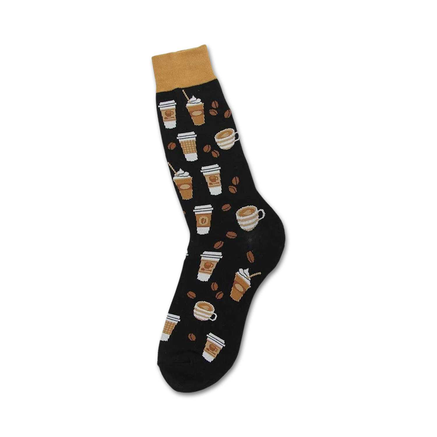 These coffee cup designed socks are the perfect pick-me-up for the coffee lover in your life. Featuring a bold black backdrop, the pattern of latte-colored mugs and rich roasted beans will add a touch of caffeine-fueled style to any outfit. Whether you're brewing a pot at home or grabbing a to-go cup from your favorite cafe, these crew-length cotton blends will keep your feet feeling perky all day long. So, sip on a cup of Joe, put on a pair of these sweet socks, and let the caffeinated adventure begin!