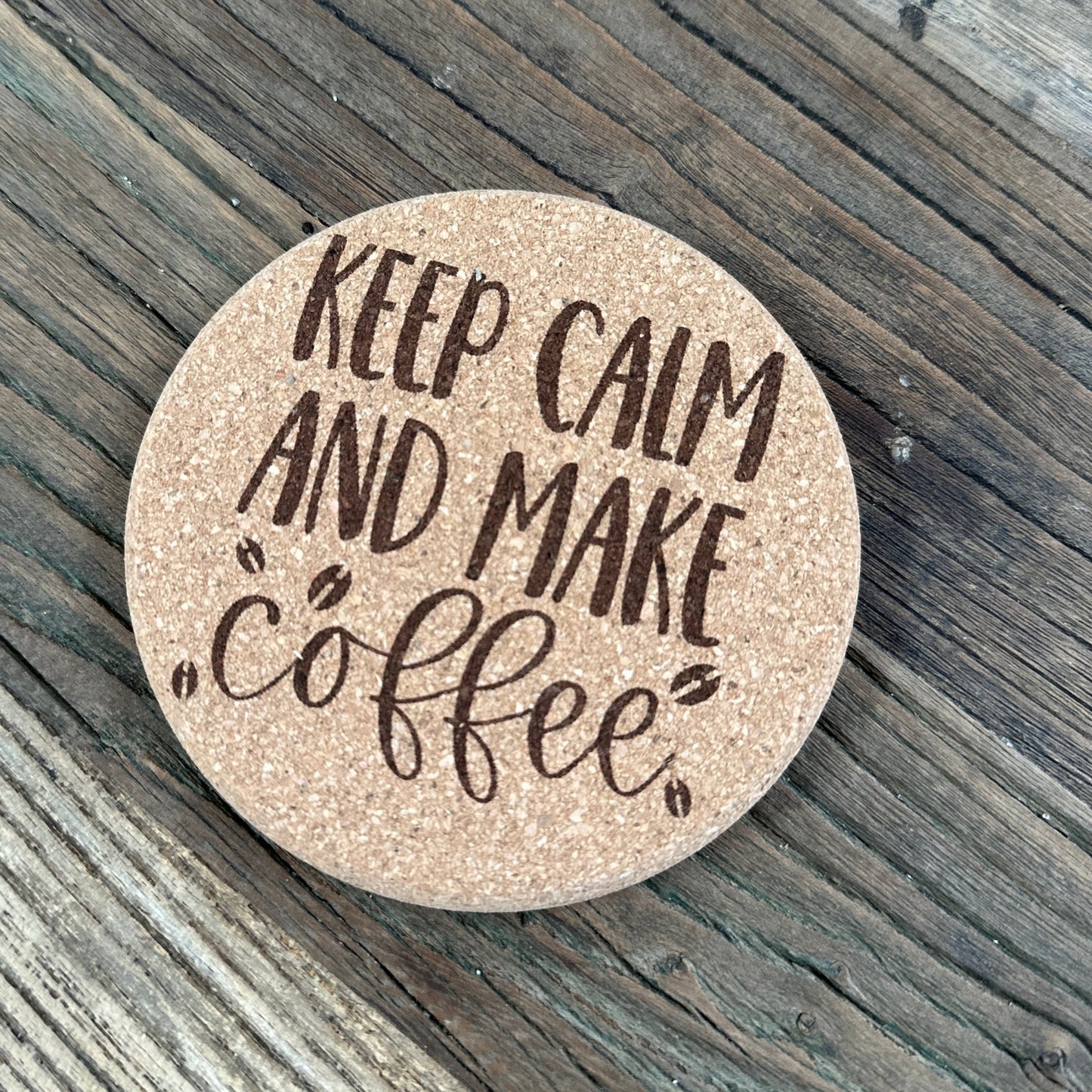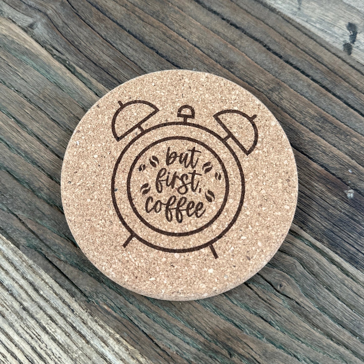 These cork coasters are perfect for any coffee lover or as a gift for someone who loves coffee! Choose from any of the available designs, each piece is sold individuality, save when ordering 9 or more for any design. Design is Permanently Laser-Etched on a 4"round thick (.40") cork coaster.