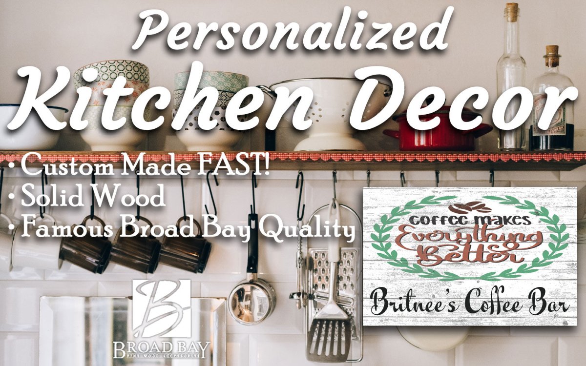 These unique farmhouse-style customized coffee sign makes a great birthday, holiday, or anniversary gift. Perfect for kitchen, coffee bar, or home office decor. Broad Bay only uses solid wood for the highest quality home decor signs. Custom created daily in Virginia Beach, our signs feature our unique Fresco Print process that actually embeds your design into the surface of the solid wood sign for a long lasting and vibrant appearance. Personalized fast, our customized signs make the perfect gift for a man, woman, family or couple!