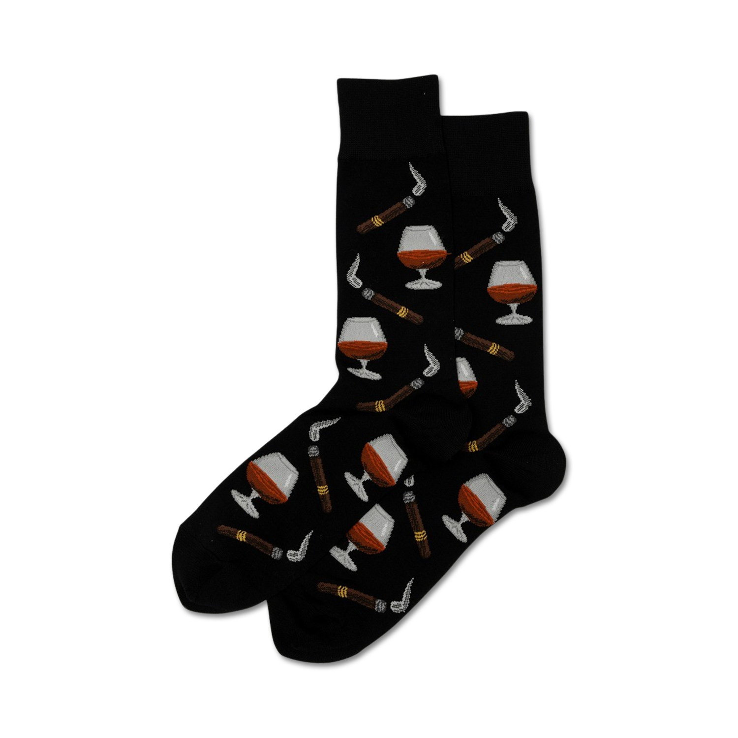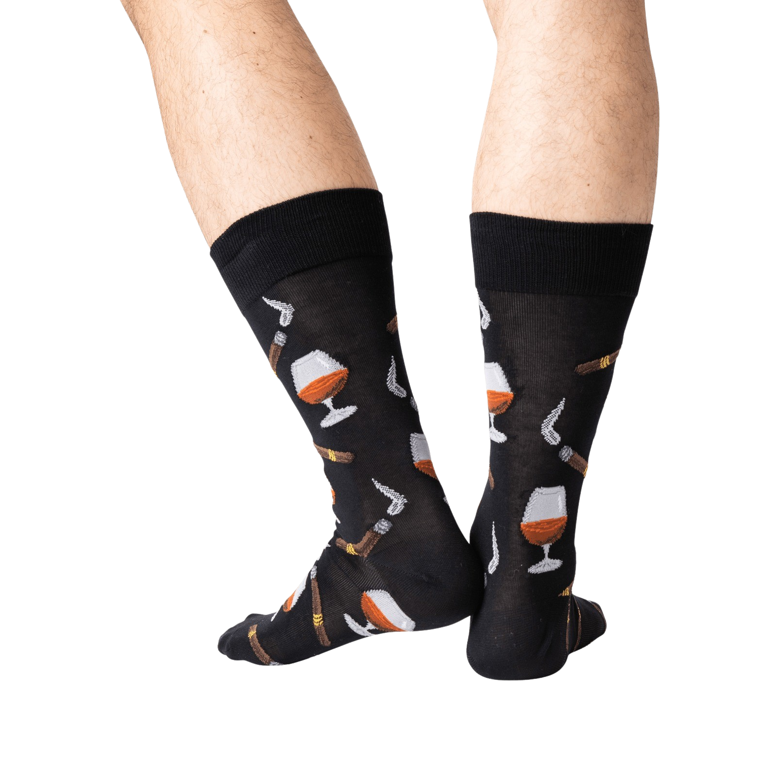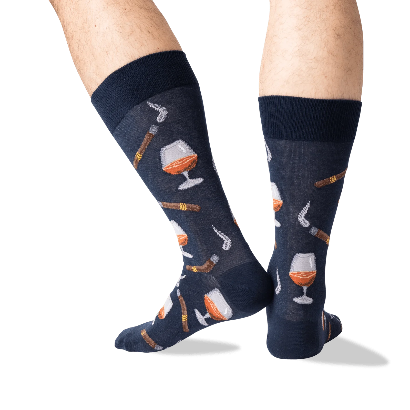 A real gentleman understands the finer things in life, but he can still appreciate the earthly pleasures too. A puff from a high-quality cigar, a sip of a smooth spirit, and a stylish pair of socks is a classic pairing fit for any occasion. Whether it's fine dining or lounge chair napping, these cool novelty socks will show off your sophisticated taste. Next time you paint the town red, do it in style with these unique socks.