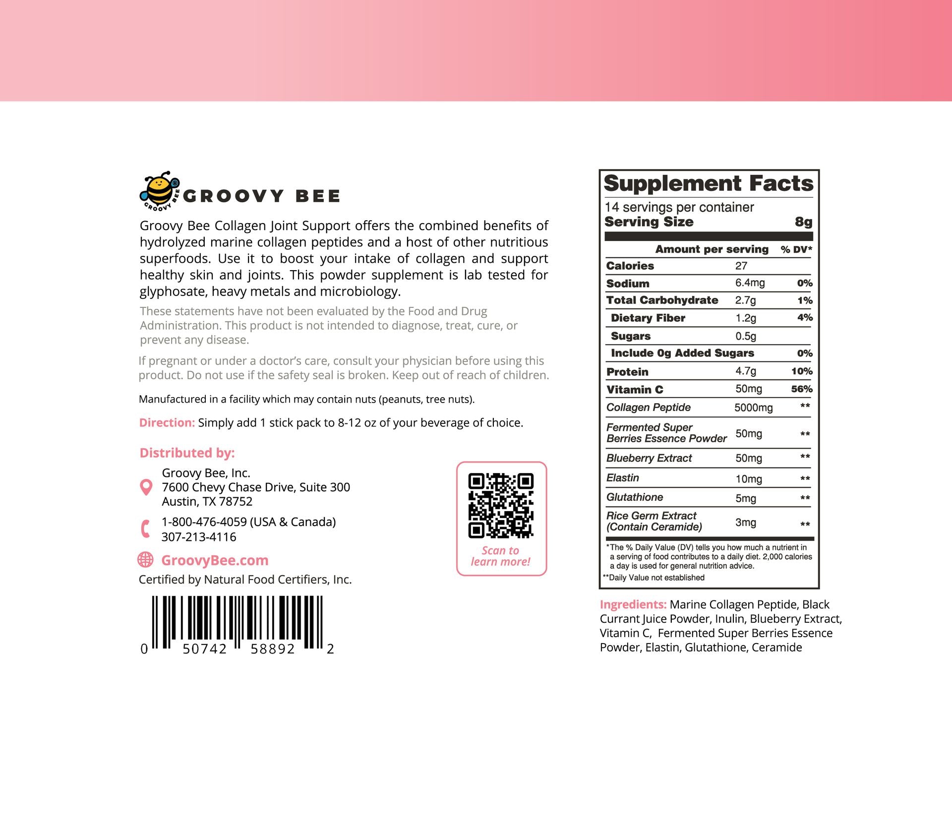 A must-have daily supplement for maintaining good health, our Groovy Bee® Collagen Joint Support with Black Currant Powder is non-GMO, non-China and has been rigorously lab tested for glyphosate, heavy metals and microbiology.