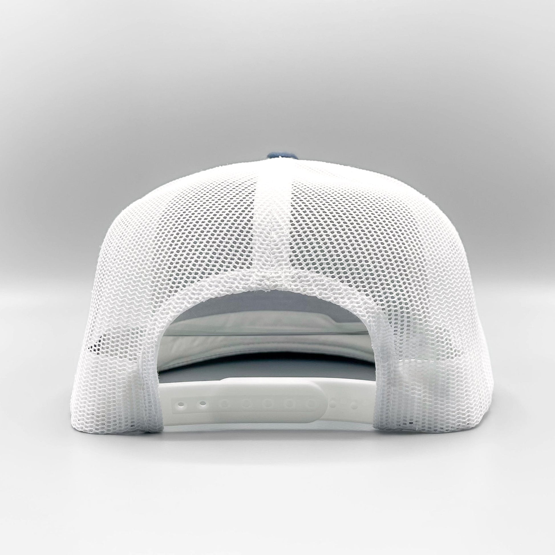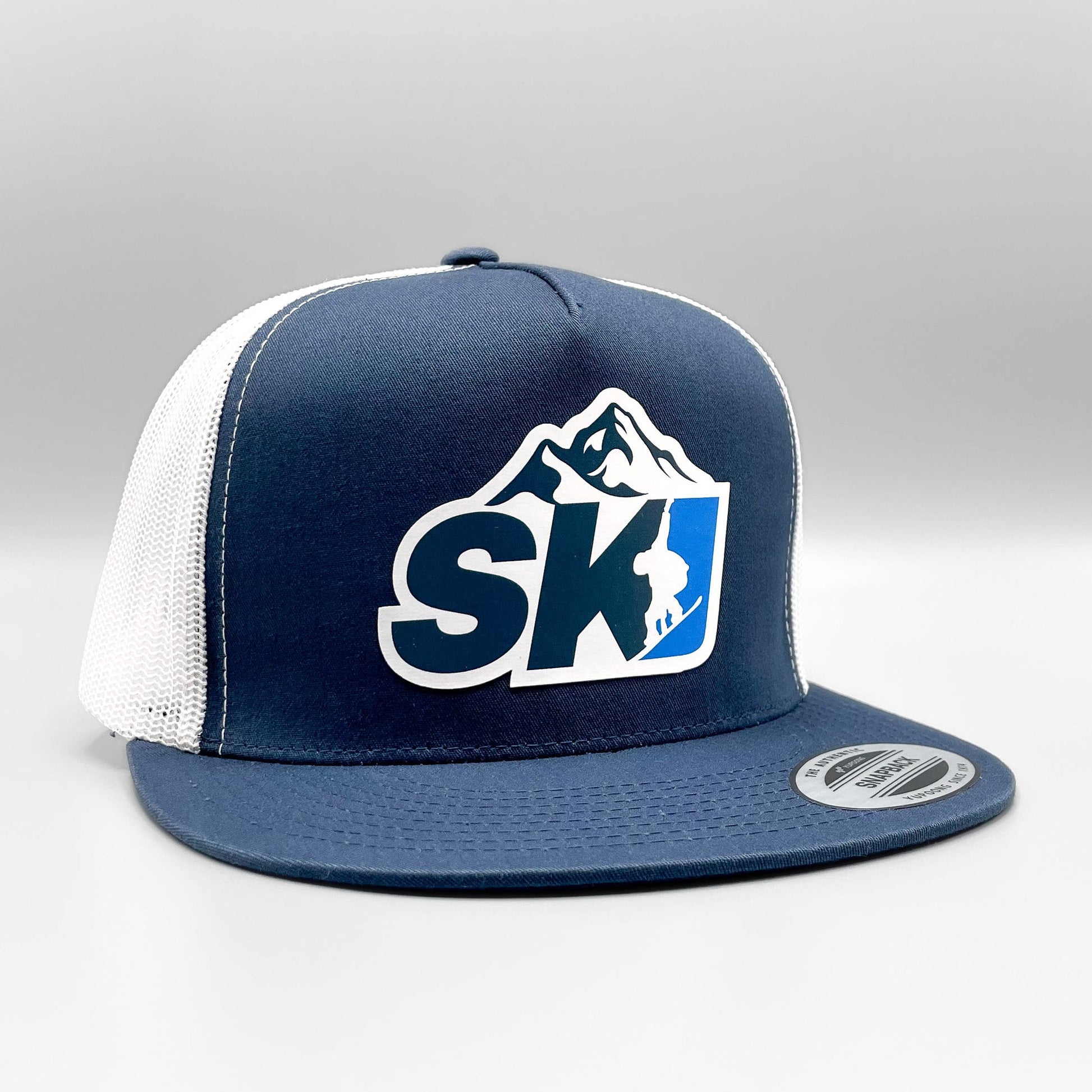 This trucker features a navy and royal blue SKI dimensional design on one of our best-selling trucker hats -- a high-crown all navy mesh Yupoong 6006 Classic Snapback Trucker Hat.