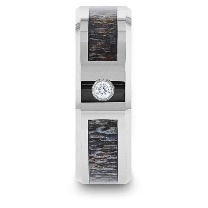 COLTON Tungsten Carbide Ring Ombre Deer Antler Inlay Polished Beveled Edges with Diamond - 8mm