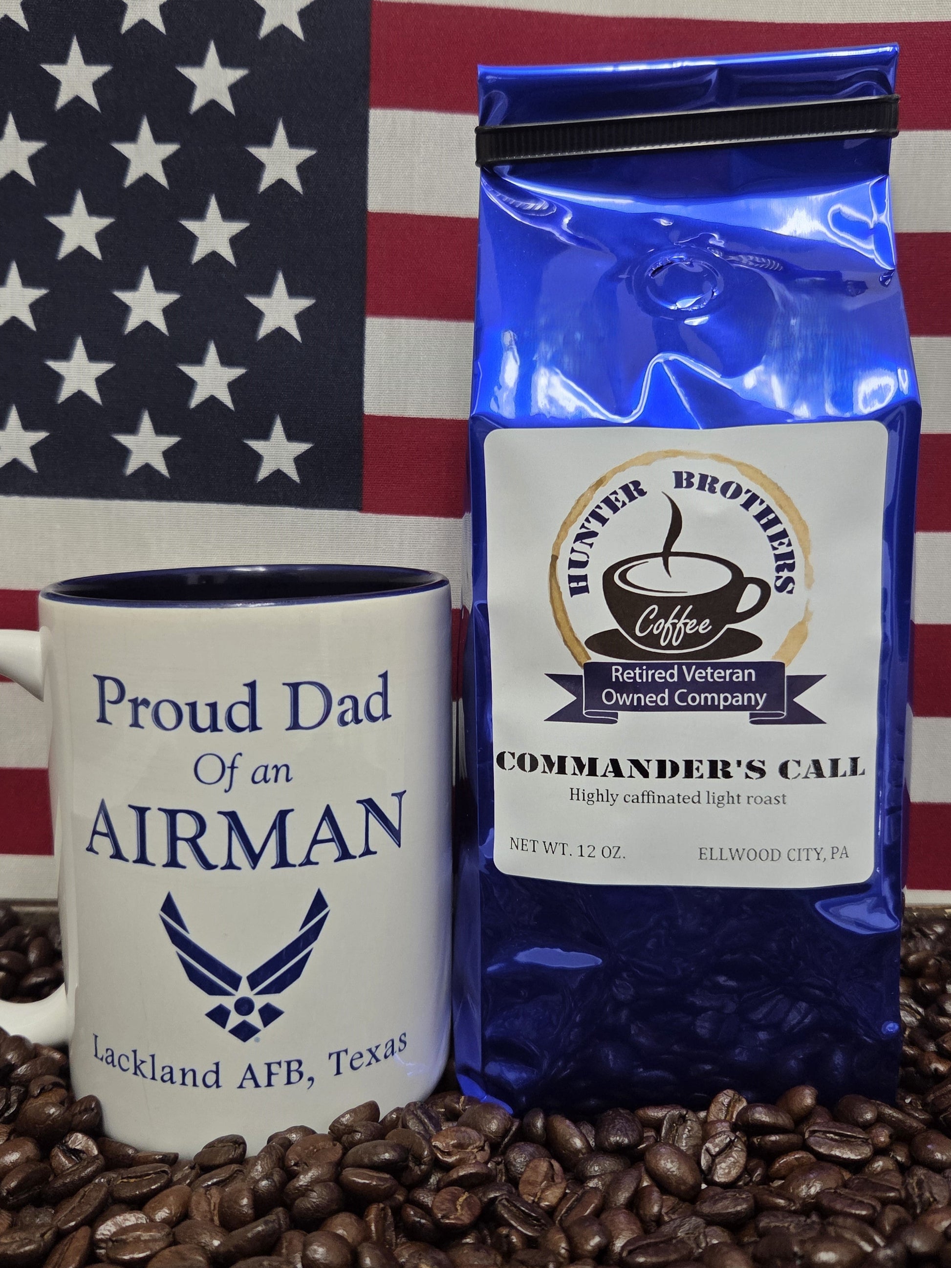 A highly caffeinated light roast so you are always ready to answer the Commander's call (Air Force Blend)