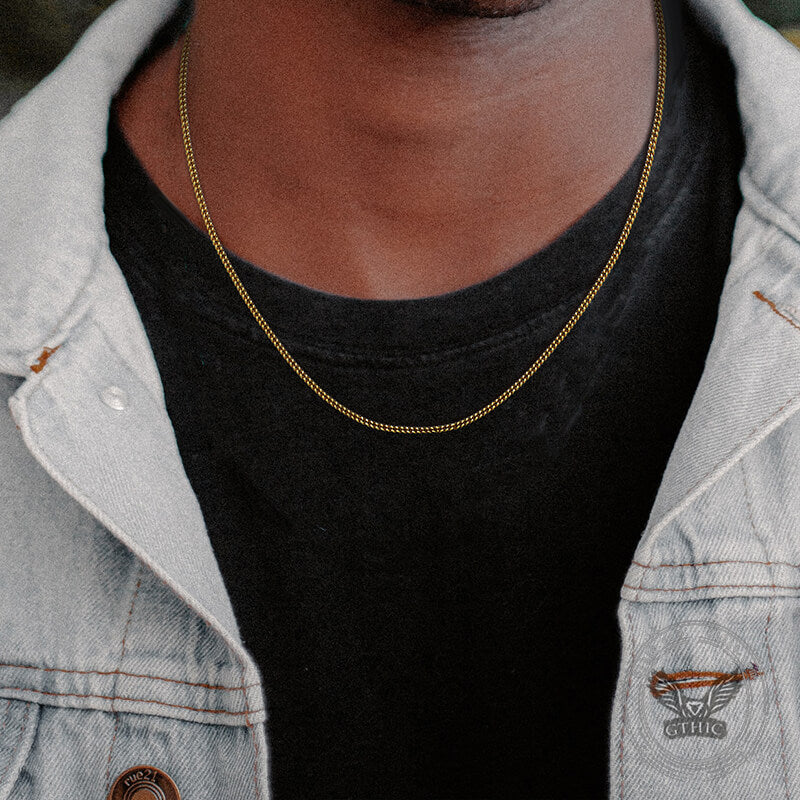 The Connell is light, understated and perfectly paired with any piece of choice. If you’ve never worn a chain before, opt for something small and classic that does not sit too heavy on your chest. Choose a plated metal base so it does not tarnish your clothing or leave you with a green mark.
