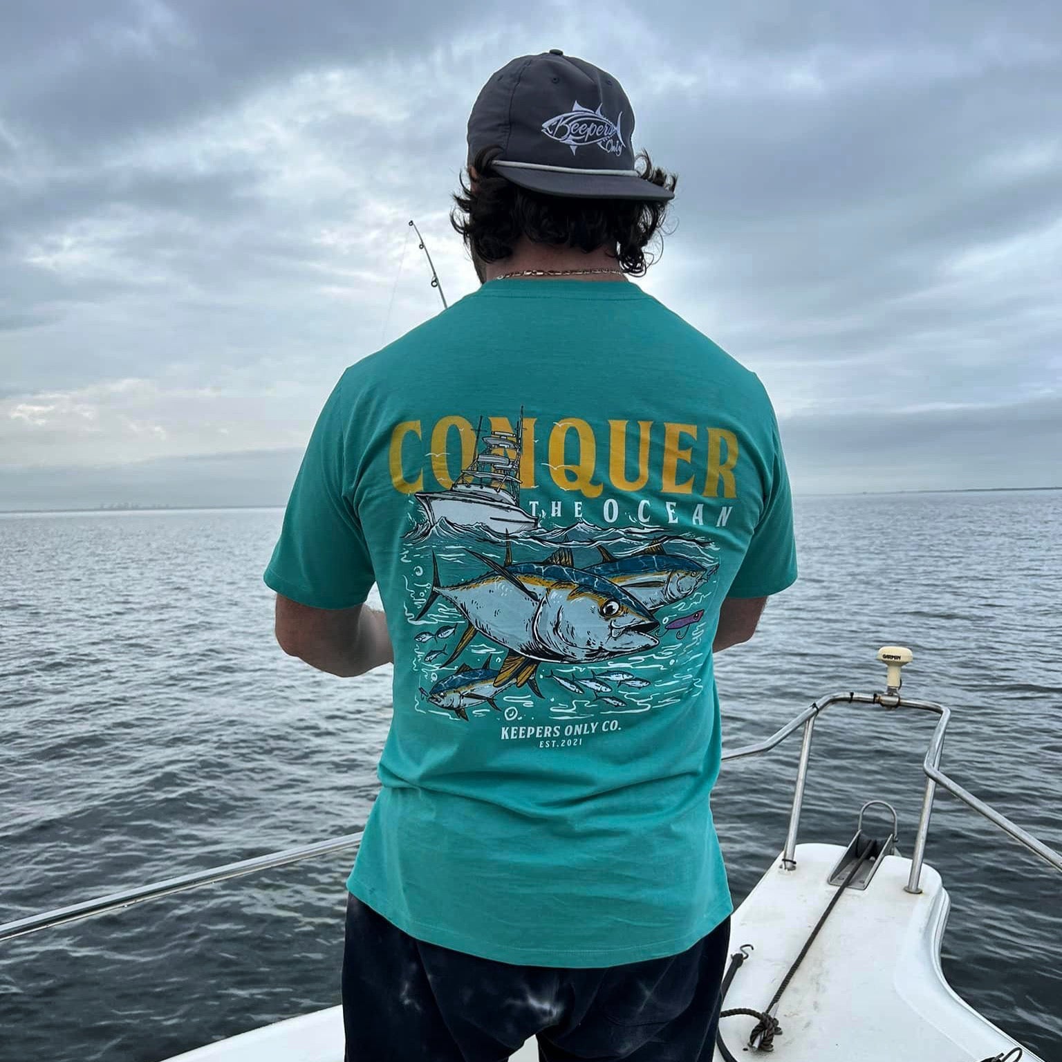 Conquer the ocean with our super comfy 100% cotton tee. Dyed with low impact dyes and tumble dried to remove shrinkage.