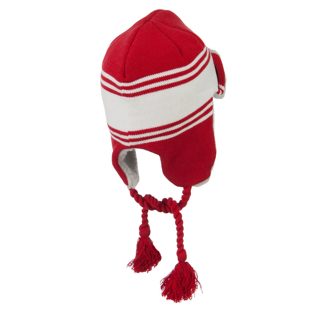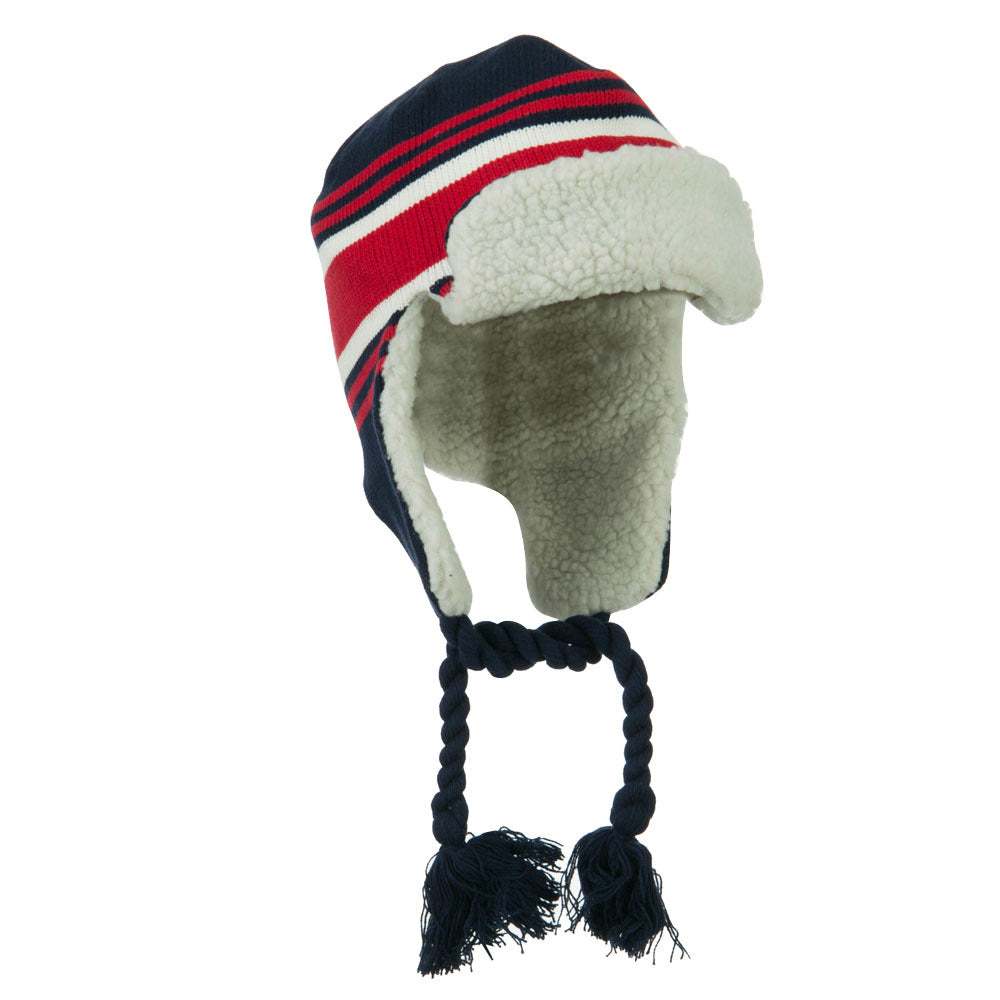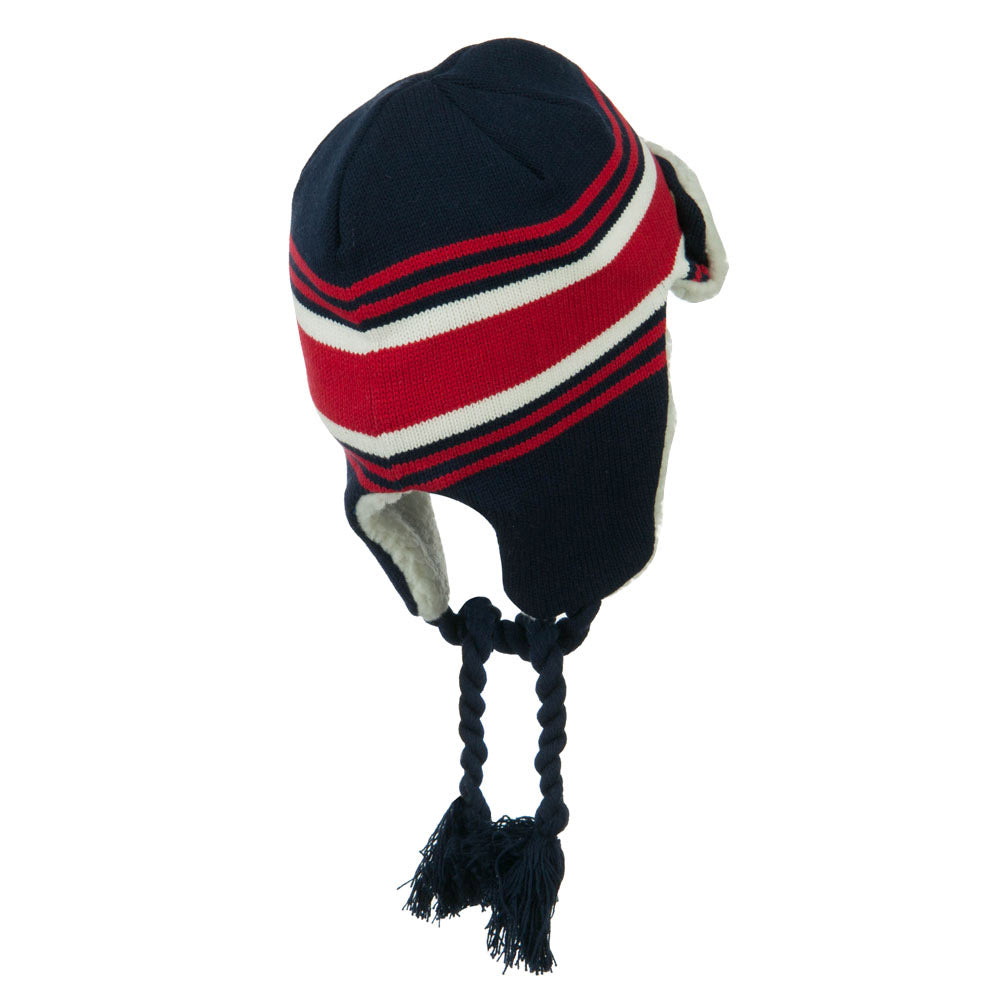 Style Description, Acrylic Knit Aviator Trooper Hat with Stripes Accents
