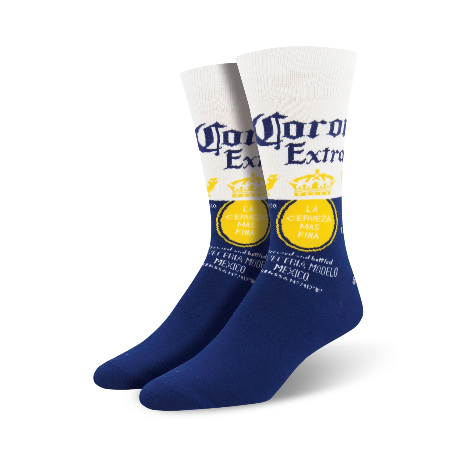 Who needs a six-pack when you can have a SOCK-pack? Introducing the Corona XL socks! These dazzling crew-length socks resemble the iconic Corona Extra label with a mysterious blue and yellow pattern. Wear them to your next pool party and be the life of the fiesta!