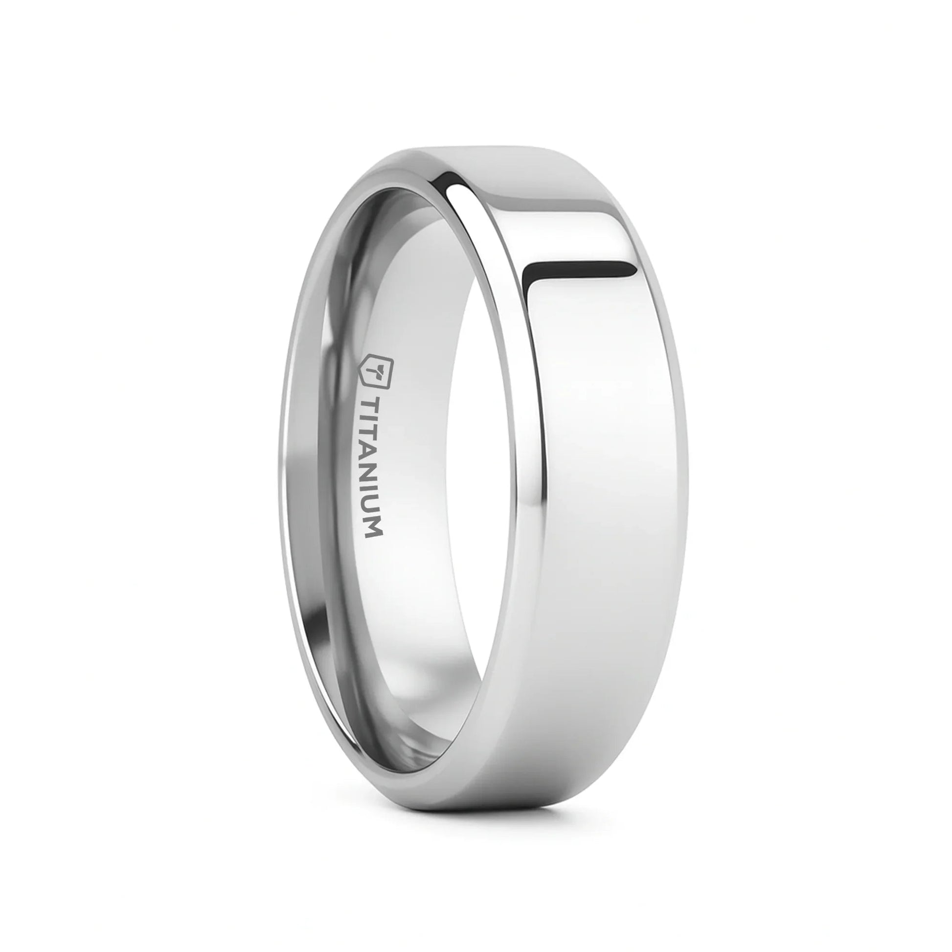 CORONAL Men’s Polished Finish Beveled Edges Titanium Wedding Ring with Raised Center - 6mm & 8mm