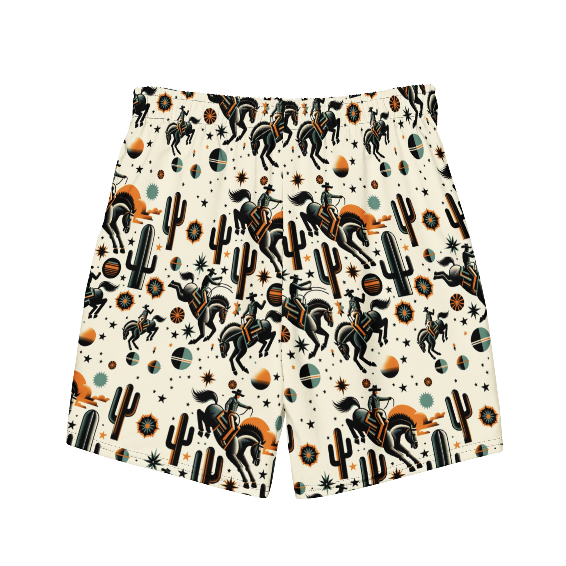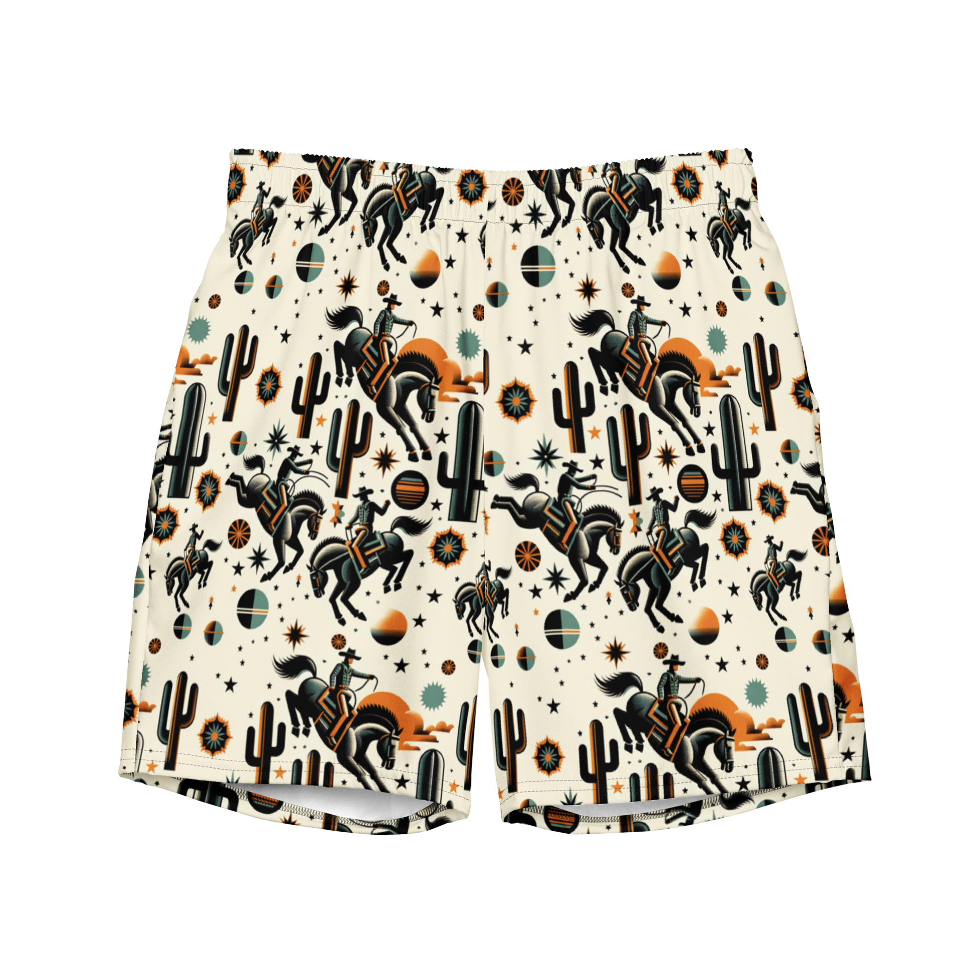 Cosmic Rodeo: Bucking Space Bronco Swim Trunks