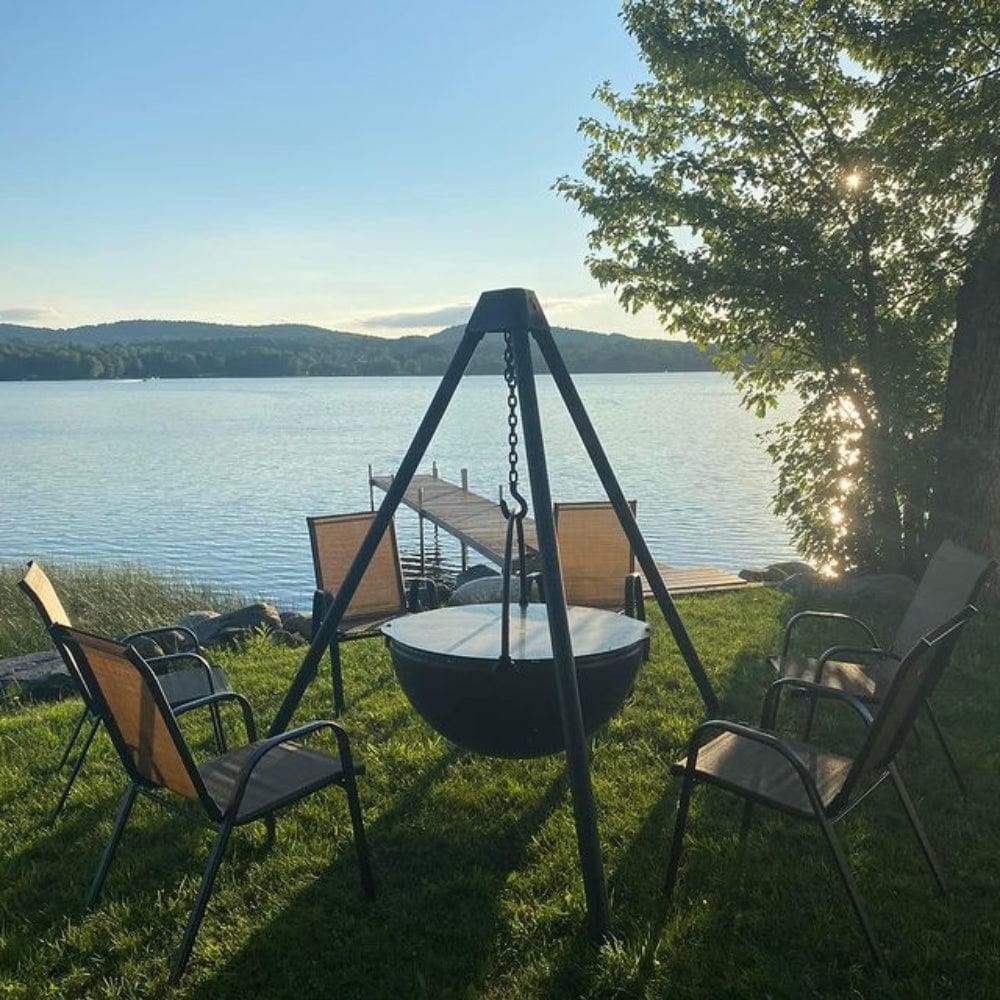 Host the most entertaining outdoor experience you can imagine with this extraordinary fire pit grill by the Cowboy Cauldron. Converse with everyone as you grill a delicious meal and enjoy it hot, straight from the fire. Unlike other grills, you can set a fire underneath its basin and cook soup in it.
